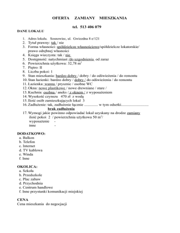OFERTA ZAMIANY MIESZKANIA tel. 513 406 079