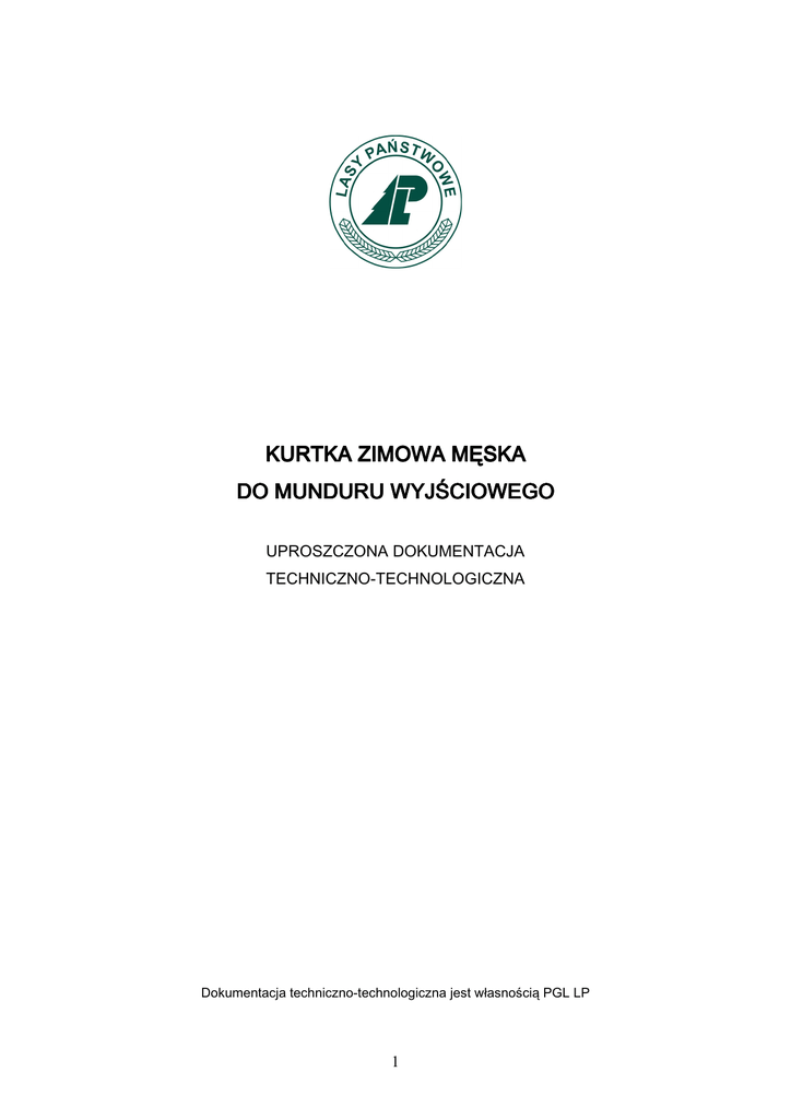 KURTKA ZIMOWA MĘSKA DO MUNDURU WYJŚCIOWEGO UPROSZCZONA DOKUMENTACJA TECHNICZNO-TECHNOLOGICZNA Dokumentacja techniczno-technologiczna jest własnością PGL LP 1 SPIS TREŚCI 1. Przedmiot dokumentacji 2.1. Opis ogólny 2.2. Normy i dokumenty związane 2. Rysunki modelowe 3. Wymagania techniczne 3.1 Dane dotyczące tkaniny wierzchniej 3.2 Ściegi maszynowe 3.3 Wykazy materiałów zasadniczych i dodatków 4. Zestawienie elementów składowych 5. Rysunki techniczne – wymiarowe 6. Tabela wymiarów 7. Warunki obioru - odbiór jakościowy - cechowanie etykiety wszywki, konserwacja - pakowanie , przechowywanie, transport 8. Oznakowanie - wzór etykiety 9. Arkusz ewidencji wprowadzonych zmian 10. Próbki tkanin 11. Załączniki – certyfikaty, wyniki badań laboratoryjnych zastosowanych materiałów (potwierdzenie spełnienia wymagań techniczno-użytkowych) 2 1. PRZDMIOT DOKUMENTACJI 1.1. OPIS OGÓLNY Kurtka zimowa męska do munduru wyjściowego na podszewce pikowanej (przód i tył), rękawy ocieplone (ocieplenie + podszewka), zapinana z przodu na zamek przykryty listwą zapinaną na 4 guziki. Kieszenie boczne z patką. W bocznych częściach wykonane kieszenie pionowe. W górnych częściach przodu wykonane kieszenie pionowe, skośne z wypustką. Tył trzyczęściowy. Na wysokości talii wykonany tunel ze sznurkiem z wyjściem wewnątrz w podszewce, przez oczka. Rękawy 5-częściowe z mankietem i 2 zakładkami, zapinane na 2 guziki. W prawym przodzie podszewki wykonana kieszeń z dwoma wypustkami z tkaniny zasadniczej, zapinana na zapinkę i guzik. W lewym przodzie podszewki wykonana kieszeń wewnętrzna z dwoma wypustkami z tkaniny zasadniczej, zapinana na zamek. Dół kurtki podwinięty i ściągnięty sznurkiem. 3 1.2. NORMY I DOKUMENTY ZWIĄZANE PN-P-84518:1996 Wyroby odzieżowe. Terminologia. PN-91/P-01831 Elementy wyrobów odzieżowych. PN-83/P-84501 Wyroby konfekcyjne. Szwy. PN-83/P-84502 Wyroby konfekcyjne. Ściegi. PN-83/P-84506 Wyroby konfekcyjne. Badania odbiorcze. PN-83/P-84507 Wyroby konfekcyjne. Stopnie jakości. PN-EN ISO 3758:2006 Znaki informacyjne o sposobie konserwacji w postaci symboli graficznych PN-P-84509:1997 Wyroby odzieżowe. Pakowanie, przechowywanie, transport. PN-91/P-84504 Wyroby konfekcyjne. Wielkości. lub PN-EN 13402:2005 Wyroby odzieżowe. Wielkości. PN-90/P-84531 Wyroby konfekcyjne. Oznaczenie. PN-90/P-84530 Wyroby konfekcyjne. Składanie. PN-80/P-81101 Nici odzieżowe. Postanowienia ogólne. 4 2. RUSUNKI RUSUNKI MODELOWE 5 3. WYMAGANIA TECHNICZNE 3.1. DANE DOTYCZĄCE TKANINY WIERZCHNIEJ (na podstawie warunków technicznych producenta) 6 3.2. ŚCIEGI MASZYNOWE Szerokość stębnówki - 02.-0.5-0.5 lub 0.2-0.6-0.6 karczek przodu, szew barkowy, pacha przodu i tyłu, szew środkowy rękawa, szew tyłu rękawa, kliny rękawa, szew środkowy tyłu, karczek tyłu, krawędź kołnierza z listwami. - 0.2-0.6 Krawędzie przodu, krawędź kołnierza, mankiet rękawa, patka kieszeni bocznej, łata kieszeni bocznej, w koło litewki górnej, listwa prawa, listwa lewa. - 0.2-0.5 Podwinięcie dołu. 7 3.3 WYKAZ MATERIAŁÓW ZASADNICZYCH I DODATKÓW Lp. Nazwa materiału Rodzaj tkaniny Norma 1. Tkanina zasadnicza 6439/000/P3345 2,78 21/3575/163 2. Podszewka 0,64 3. Podszewka pikowana 60g 1,11 4. Włóknitex klejony 1,1 5. Ocieplenie 40g 0,94 6. Flanela 0,35 7. Kieszeniówka 0,26 8. Nici do szycia i stębnowania 120 480 mb 9. Nici do dziurek i guzików 80 20 mb 10. Guziki Ø 32 8+1 szt. 11. Guziki Ø 24 1 szt. 12. Zamek do kieszeni wew. 13. Zamek do przodu 1 szt. 14. Sznurek do talii 2,45 15. Sznurek do dołu kurtki 16. Stopery 4 szt. 17. Oczka + podkłady 4 szt. 18. Guma do kieszeni bocznej 19. Wszywka rozmiarowa 1 szt. 20. Etykieta klejona 1 szt. 21. Znak ostrzegawczy nr II + 22. Etykieta klienta 1 szt. 23. Plomba 1 szt. 24. Wieszak 1 szt. 25. Worek 1 szt. 26. Taśma włóknitex klej. 1,5 cm 1,20 mb 27. Taśma bawełniana 0,6 cm 1,40 mb 28. Taśma włóknitex zwykły 5 cm 0,44 mb 29. Nici na pręciki 30 3 mb 16 cm 3 cm przepis prania Nr I 8 1 szt. 0,50 mb 1 +1 szt 4. ZESTAWIENIE ELEMENTÓW SKŁADOWYCH SKŁADOWYCH Rodzaj tkaniny Lp Wyszczególnienie elementów Ilość Tkanina zasadnicza 1. Przody 2 2. Przednia część przodu 2 3. Listwo kołnierz prawy 2 4. Listwo kołnierz lewy 2 5. Karczek przodu 2 6. Wypustka kieszeni górnej 2 7. Podkład kieszeni górnej 2 8. Patka kieszeni bocznej 4 9. Łata kieszeni bocznej 2 10. Mieszek kieszeni bocznej 2 11. Odszycie otworu kiesz.bocz. 2 12. Karczek tyłu 1 13. Dolna część tyłu 2 14. Rękaw przedni 2 15. Rękaw tylni 2 16. Rękaw przedni klin 2 17. Rękaw spodni 2 18. Rękaw spodni klin 2 19. Obłożenia 2 20. Wypustka kieszeni wew. 2 21. Podkład kieszeni wew. 2 22. Kołnierz wierzchni 1 23. Mankiet rękawa 4 24. Wieszaczek 1 25. Zapinka kieszeni wew. 1 Tkanina zasadnicza 1. Kołnierz spodni 1 Włók. klejony 1. Wypustka kieszeni górnej 2 2. Przednia część przodu 2 3. Obłożenia 2 4. Listwo kołnierz lewy 1 9 Podszewka pikowana 60 g Podszewka Ocieplenie 40g Flanela Kieszeniówka 5. Listwo kołnierz prawy 1 6. Kołnierz wierzchni 1 7. Kołnierz spodni 1 8. Mankiet 2 9. Kula rękawa tyłu 2 10. Kula rękawa przodu 2 11. Szyjka tyłu 1 12. Szyjka karczka przodu 2 13. Szyjka przodu 2 14. Podkład kieszeni bocznej 2 15. Wypustka kieszeni wew. 2 16. Patka kieszeni bocznej 2 1. Tył 1 2. Przód 2 1. Rękaw wierzchni 2 2. Rękaw spodni 2 3. Tunel 1 4. Podtrzymywacz pach 4 1. Obłożenie 2 2. Rękaw wierzchni 2 3. Rękaw spodni 2 4. Wzmocnienie szwów i pach 4 1. Worek kieszeni bocznej 2 2. Odszycie kieszeni bocznej 2 3. Worek kieszeni górnej 4 1. Worek kieszeni wew. 4 10 DODATKI: Lp. Nazwa Zużycie 1. Nici do szycia i stębnowania 120 480 mb 2. Nici do dziurek i guzików 80 20 mb 3. Nici na pręcik 3 mb 4. Guziki Ø 32 4+1 szt. 5. Guziki Ø 32 4+1 szt. 6. Guziki Ø 24 1 szt. 7. Zamek do kieszeni wewnętrznej 16 cm 1 szt. 8. Zamek do przodu 1 szt. 9. Sznurek do talii 2,45 10. Sznurek do dołu kurtki 2,45 11. Stopery 4 szt. 