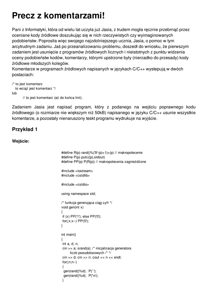 komentarze, a pozostały nienaruszony teskt programu wydrukuje na wyjście.
