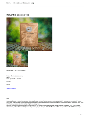 Kawa : Kolumbia Excelso 1kg Kolumbia Excelso 1kg Mocna kawa z du?a ilo?ci? kofeiny. Ocena: Nie ma jeszcze oceny Cena Cena sprzeda?y z rabatem 80,00 z? Rabat Zapytaj o produkt Opis Colombia Excelso znana w Europie jako Kolumbia Excelso jest kaw? o intensywnym, mo?na powiedzie? - wytrawnym aromacie. W smaku poczujemy nutk? lekkiego kwasku podobna do rodzimych czarnych porzeczek, oraz s?odycz dojrza?ych owoców. Kawa ta zawiera do?? du?? ilo?? kofeiny, przez co idealnie nadaje si? jako kawa espresso. Pierwsze sadzonki krzewów kawowych przyw?drowa?y na tereny dzisiejszej Kolumbii wraz z jezuitami w XVII wieku. Dzi? Kolumbia jest wiceliderem, je?li chodzi o produkcj? kawy. Wyprzedza j? tylko Brazylia. Columbia Excelso ro?nie na wysoko?ci oko?o 1700 metrów n.p.m., 1 / 2 Kawa : Kolumbia Excelso 1kg cho? niektóre gatunki kolumbijskie mo?na spotka? nawet na wysoko?ci dwóch kilometrów. Panuje tam idealny klimat dla tych niezwykle wymagaj?cych krzewów. O tym, jak warunki pogodowe s? istotne w uprawie kawy dobitnie ?wiadczy fakt, i? z powodu podniesienia si? temperatury o jeden stopie? Celsjusza w latach 1980-2010 – produkcja ziaren w Kolumbii zacz??a raptownie spada?. Du?e ziarna, które s? charakterystyczne dla tego gatunku kawy pozyskiwane s? metod? na mokro. Nast?pnie przechodz? proces palenia, który sprawia, ?e gotowy napar cechuje si? nisk? kwasowo?ci? i idealnie zbalansowanym smakiem. Fili?anka kawy Kolumbi Excelso to prawdziwa mieszanka wybuchowa. Z jednej strony – wysoka zawarto?? kofeiny, z drugiej – cudowna delikatno??. Gorzka, mroczna strona czekolady kontrastuje z m?odzie?cz? ?wie?o?ci? zielonego groszku. Do tego lekka kwasowo?? czarnej porzeczki, kilka kropli s?odkiego karmelu i tropikalna nuta owocowa. 2 / 2 Powered by TCPDF (www.tcpdf.org)