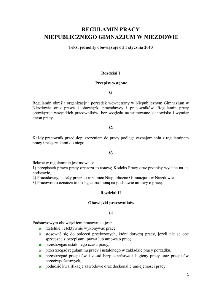 regulamin pracy niepublicznego gimnazjum w niezdowie