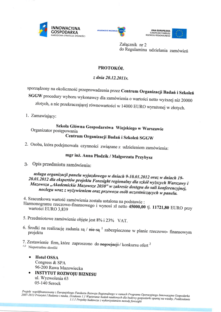 Nazwa wykonawcy: Hotel Korona sp. z o.o., 04-0gs ftu.*ru*u, ul. Majdarfiska