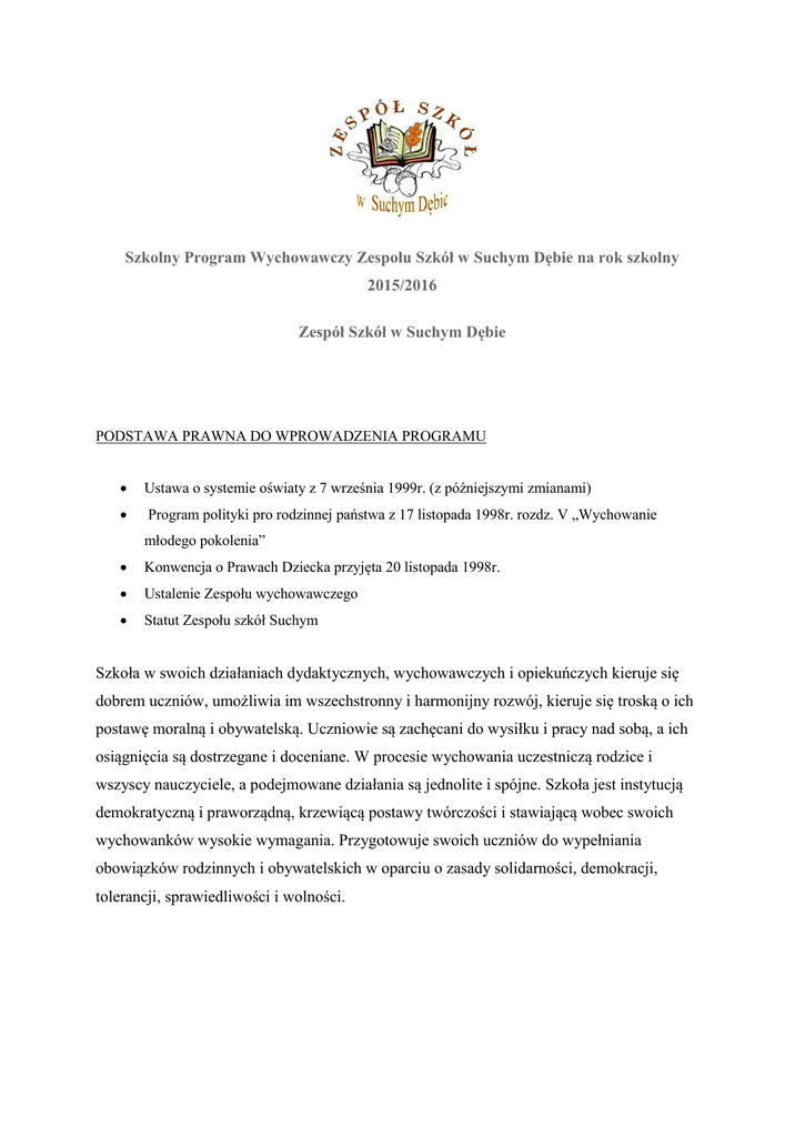 Szkolny Program Wychowawczy Zespołu Szkół w Suchym Dębie na