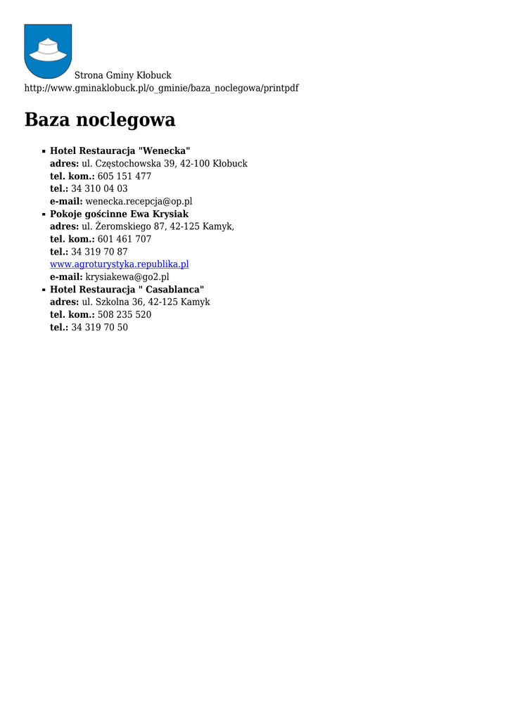 Baza noclegowa - Urząd Gminy i Miasta Kłobuck
