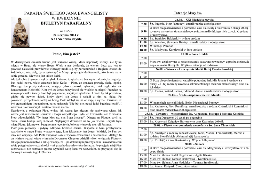 pobierz biuletyn - Parafia pw św. Jana Ewangelisty