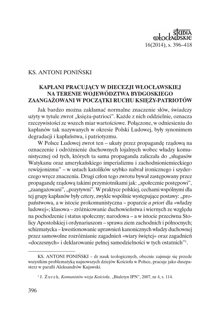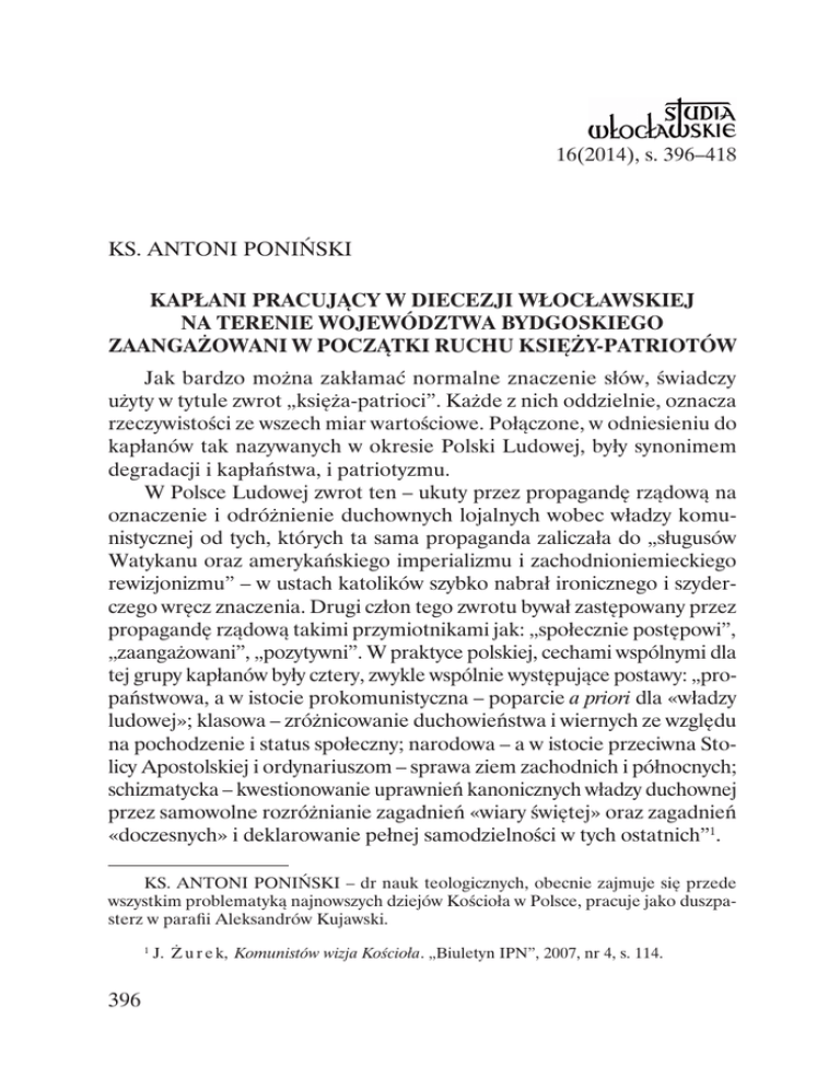 396 Ks. Antoni PonińsKi Kapłani pracujący w diecezji włocławsKiej