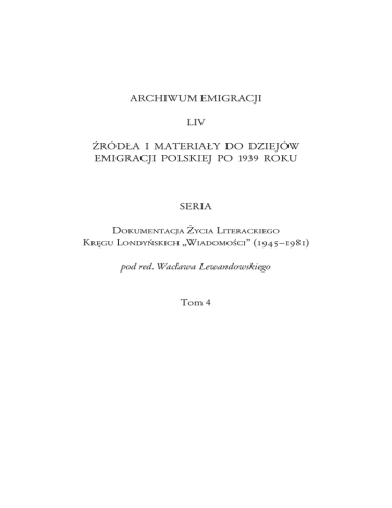 ARCHIWUM EMIGRACJI LIV ŹRÓDŁA I MATERIAŁY DO DZIEJÓW