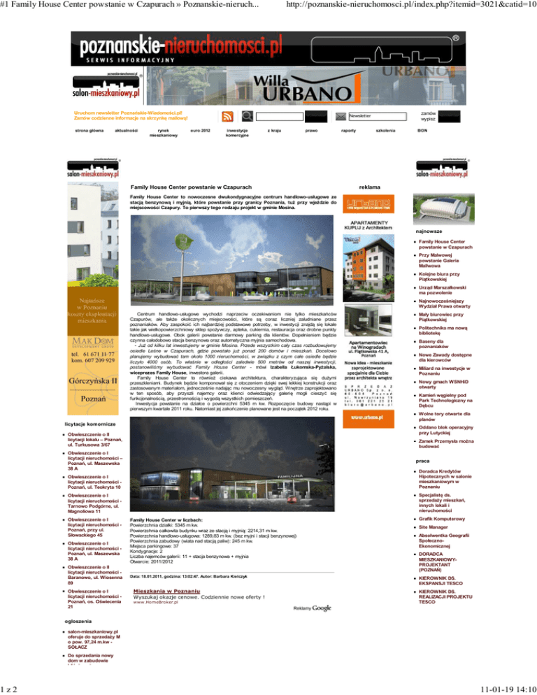 #1 Family House Center powstanie w Czapurach » Poznanskie-nieruch... 1z2 http://poznanskie-nieruchomosci.pl/index.php?itemid=3021&catid=10 Uruchom newsletter Poznańskie-Wiadomości.pl! Zamów codzienne informacje na skrzynkę mailową! strona główna aktualności rynek mieszkaniowy Szukaj euro 2012 inwestycje komercyjne z kraju prawo Family House Center powstanie w Czapurach zamów wypisz Newsletter raporty szkolenia Wyslij BON reklama Family House Center to nowoczesne dwukondygnacyjne centrum handlowo-usługowe ze stacją benzynową i myjnią, które powstanie przy granicy Poznania, tuż przy wjeździe do miejscowości Czapury. To pierwszy tego rodzaju projekt w gminie Mosina. najnowsze Family House Center powstanie w Czapurach Przy Malwowej powstanie Galeria Mallwowa Kolejne biura przy Piątkowskiej Urząd Marszałkowski ma pozwolenie Najnowocześniejszy Wydział Prawa otwarty Centrum handlowo-usługowe wychodzi naprzeciw oczekiwaniom nie tylko mieszkańców Czapurów, ale także okolicznych miejscowości, które są coraz liczniej zaludniane przez poznaniaków. Aby zaspokoić ich najbardziej podstawowe potrzeby, w inwestycji znajdą się lokale takie jak wielkopowierzchniowy sklep spożywczy, apteka, cukiernia, restauracja oraz drobne punkty handlowo-usługowe. Obok galerii powstanie darmowy parking dla klientów. Dopełnieniem będzie czynna całodobowo stacja benzynowa oraz automatyczna myjnia samochodowa. - Już od kilku lat inwestujemy w gminie Mosina. Przede wszystkim cały czas rozbudowujemy osiedle Leśne w Czapurach, gdzie powstało już ponad 200 domów i mieszkań. Docelowo planujemy wybudować tam około 1000 nieruchomości, w związku z czym całe osiedle będzie liczyło 4000 osób. To właśnie w odległości zaledwie 500 metrów od naszej inwestycji, postanowiliśmy wybudować Family House Center - mówi Izabella Łukomska-Pyżalska, wiceprezes Family House, inwestora galerii. Family House Center to również ciekawa architektura, charakteryzująca się dużymi przeszkleniami. Budynek będzie komponował się z otoczeniem dzięki swej lekkiej konstrukcji oraz zastosowanym materiałom, jednocześnie nadając mu nowoczesny wygląd. Wnętrze zaprojektowano w ten sposób, aby przyszli najemcy oraz klienci odwiedzający galerię mogli cieszyć się funkcjonalnością, przestronnością i wygodą wszystkich pomieszczeń. Inwestycja powstanie na działce o powierzchni 5345 m kw. Rozpoczęcie budowy nastąpi w pierwszym kwartale 2011 roku. Natomiast jej zakończenie planowane jest na początek 2012 roku. Mały biurowiec przy Piątkowskiej Politechnika ma nową bibliotekę Baseny dla poznaniaków Nowe Zawady dostępne dla kierowców Miliard na inwestycje w Poznaniu Nowy gmach WSNHiD otwarty Kamień węgielny pod Park Technologiczny na Dębcu Wolne tory otwarte dla planów licytacje komornicze Oddano blok operacyjny przy Lutyckiej Obwieszczenie o II licytacji lokalu – Poznań, ul. Turkusowa 3/67 Zamek Przemysła można budować Obwieszczenie o I licytacji nieruchomości – Poznań, ul. Maszewska 38 A praca Obwieszczenie o I licytacji nieruchomości Poznań, ul. Teokryta 10 Doradca Kredytów Hipotecznych w salonie mieszkaniowym w Poznaniu Obwieszczenie o I licytacji nieruchomości Tarnowo Podgórne, ul. Magnoliowa 11 Specjalistę ds. sprzedaży mieszkań, innych lokali i nieruchomości Obwieszczenie o I licytacji nieruchomości Poznań, przy ul. Słowackiego 45 Obwieszczenie o I licytacji nieruchomości Poznań, ul. Maszewska 38 A Obwieszczenie o II licytacji nieruchomości Baranowo, ul. Wiosenna 89 Obwieszczenie o I licytacji nieruchomości Poznań, os. Oświecenia 21 Family House Center w liczbach: Powierzchnia działki: 5345 m kw. Powierzchnia całkowita budynku wraz ze stacją i myjnią: 2214,31 m kw. Powierzchnia handlowo-usługowa: 1289,83 m kw. (bez myjni i stacji benzynowej) Powierzchnia zabudowy (wiata nad stacją paliw): 245 m kw. Miejsca parkingowe: 37 Kondygnacje: 2 Liczba najemców galerii: 11 + stacja benzynowa + myjnia Otwarcie: 2011/2012 Grafik Komputerowy Data: 18.01.2011, godzina: 13:02:47. Autor: Barbara Kielczyk KIEROWNIK DS. EKSPANSJI TESCO Mieszkania w Poznaniu Wyszukaj okazje cenowe. Codziennie nowe oferty ! www.HomeBroker.pl Site Manager Absolwentka Geografii SpołecznoEkonomicznej DORADCA MIESZKANIOWYPROJEKTANT (POZNAŃ) KIEROWNIK DS. REALIZACJI PROJEKTU TESCO ogloszenia salon-mieszkaniowy.pl oferuje do sprzedaży M o pow. 97,24 m.kw SOŁACZ Do sprzedania nowy dom w zabudowie bliźniaczej w 11-01-19 14:10 #1 Family House Center powstanie w Czapurach » Poznanskie-nieruch... 2z2 http://poznanskie-nieruchomosci.pl/index.php?itemid=3021&catid=10 NIERUCHOMOŚĆ PRZEMYSŁOWA NA SPRZEDAŻ "NOWY TOMYŚL – 7,6 ha" NIERUCHOMOŚĆ PRZEMYSŁOWA NA SPRZEDAŻ "SWARZĘDZ – 1,0 ha" NIERUCHOMOŚĆ PRZEMYSŁOWA NA SPRZEDAŻ "TRZEMESZNO – 7,7 ha" NIERUCHOMOŚĆ PRZEMYSŁOWA NA SPRZEDAŻ Zatrudnię pośrednika POZNAŃ. Copyright © 2007 - 2010 gremedia.pl kontakt | zasady korzystania z serwisu | wykonanie: gremedia.pl Serwis przetestowano w przeglądarkach: Opera 10.10, Firefox 3.5.7, Safari 4.0.4, Internet Explorer 8.0, Google Chrome 3.0, Netscape Navigator 9.0.0.6 2 odwiedzających Opakowania Foliowe | drzwi warszawa 11-01-19 14:10