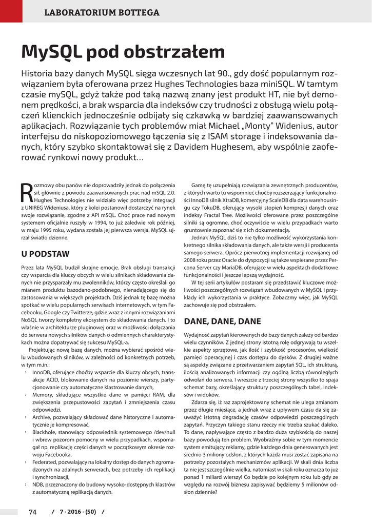W tej serii artykułów postaram się przedstawić kluczowe możliwości poszczególnych rozwiązań wbudowanych w MySQL i przykłady ich wykorzystania w praktyce. Zobaczmy więc, jak MySQL