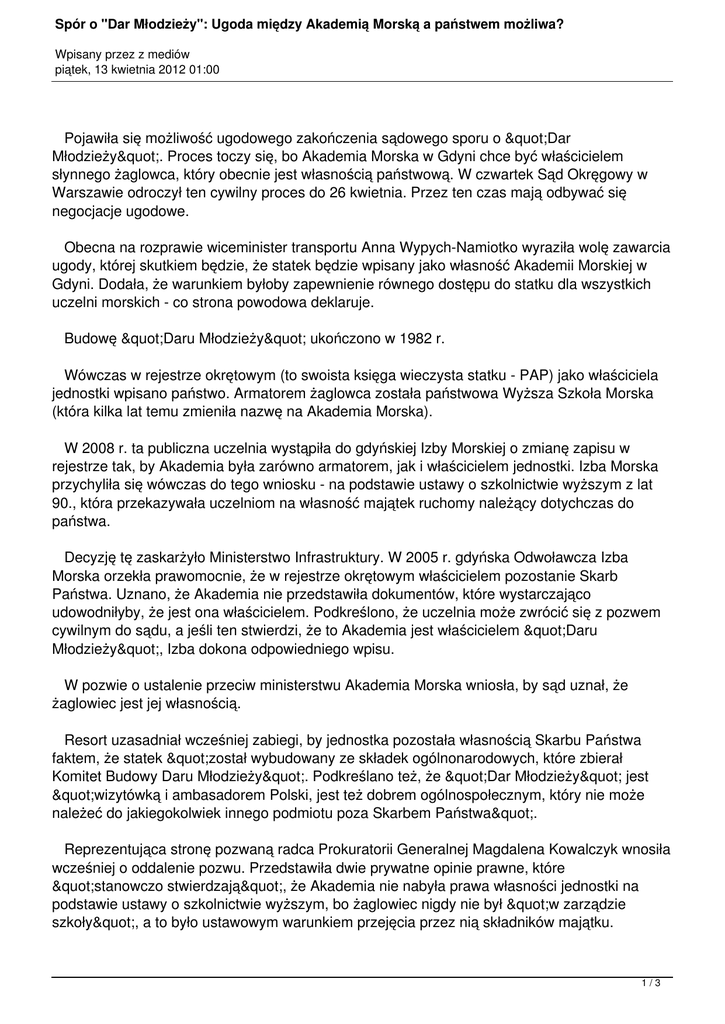 uczelni morskich - co strona powodowa deklaruje.