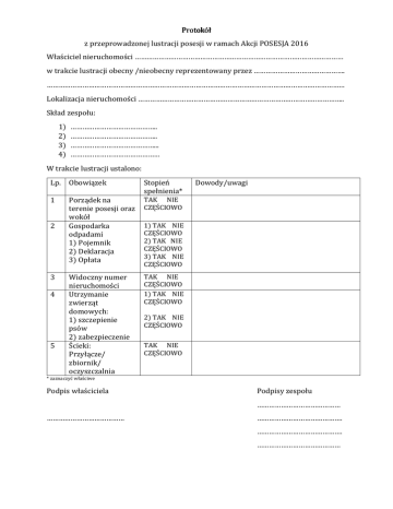 Protokół z przeprowadzonej lustracji posesji w ramach Akcji