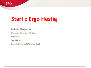 Start z Ergo Hestią Izabella Skrzypczyk Menadżer Sprzedaży PD Opole Ergo Hestia 508 045 767 [email protected] 1 Konkurs • Konkurs na zakończenie webinarium • Dla 5 pierwszych osób, które wyślą poprawną odpowiedź na pytanie konkursowe, na adres [email protected]. Pytanie pojawi się pod koniec spotkania • Kubki firmowe 2 Program iPegaz • Dostęp do programu iPegaz https://ipegaz.ergohestia.pl Login Hasło: zmiana co 30 dni, brak logowania hasło wygasa po 45 dniach • Utrata hasła należy skorzystać z funkcji Zapomniałem hasła (potrzebny login) hasło zostanie wysłane na adres mailowy dcu • Utrata loginu kontakt z DCU 3 Przydatne telefony 4 Przekroczenie pełnomocnictwa B Underwriter Lokalny Detalu • • Sylwia Kołkowska, tel. 727 025 473, Magdalena Dębowska, tel. 727 026 895, adres e-mail: [email protected] Zadania: • - Ocena ryzyka w ubezpieczeniach firmowych • - Zgody w zakresie spraw przekraczających pełnomocnictwo • - Dodatkowe zniżki w segmencie B (mały i średni przedsiębiorca) 5 Korporacja kontakt Ubezpieczenia korporacyjne: • • • • Tomasz Kette kierownik zespołu korporacyjnego w Gliwicach 508045294 [email protected] Andrzej Ościk 508045281; [email protected] Anna Getler 508045317; [email protected] Joanna Lewandowska – floty 508045299; [email protected] 6 Zespół Wsparcia Agenta • iKomunikator Udzielanie informacji w zakresie: • Umów • • • • • aneksy (wpływ druku, odnotowanie zmian w systemie, zwrot składki dla Klienta) wypowiedzenia (wpływ wypowiedzenia i jego skuteczność) proces zbywca/nabywca (wpływ dokumentów, weryfikacja rejestracji sprzedaży i zwrotu dla zbywcy) wznowienia centralne (informacja o wystawieniu polisy, numer polisy) anulowanie druku (status druku anulowanego, informacja o obowiązującej procedurze) • Błędów • błędy merytoryczne dot. polis/aneksów stwierdzone na etapie kontroli • Rozliczeń 58 555 69 99 • Wydawanie zgody na: • wystawianie aneksów do polis zmieniających Ubezpieczonego (wykup z leasingu, wykup pojazdu przez jednego z właścicieli, zmiana formy prawnej działalności np. ze spółki cywilnej na jawną) rozkładanie płatności na raty; przesuwanie terminów płatności o 2 tyg. od daty raty składki anulowanie polisy z powodu błędu technicznego Agenta przyjęcie od Klienta zaświadczenia o przebiegu ubezpieczenia w języku obcym zmiany wynikające z oczywistych błędów pisarskich na polisie (np. pomylona data rozpoczęcia ochrony - 2013.08.01 zamiast 2015.08.01) przepisanie na spadkobierców polisy ubezpieczenia nieruchomości, gdy właściciel nieruchomości zmarł wystawienie aneksu rozszerzającego ubezpieczenie o powódź dla polis kontynuowanych uznanie wypowiedzenia umowy za skuteczne, gdy wpłynie do ERGO Hestii po terminie ustawowym, ale zostało nadane przez Klienta w terminie wystawienie aneksu dot. przepisania polisy ubezpieczenia nieruchomości, gdy zmiana własności odbywa się w obrębie najbliższej rodziny (tj. rodzice-dzieci, dzieci-rodzice) na podstawie aktu darowizny • • • • • • • • • • 7 Promocje 8 Dodatkowe zniżki Program Agent Underwriter • • Trwa od 16 stycznia do 31 marca b.r. 15% - maksymalna wysokość zniżki, jaką można udzielić w ramach programu • • • • • Do wznowień tego samego agenta Dla klientów nowych w EH Brak zniżek na ubezpieczenia komunikacyjne Klienci, którzy przez ostatnie 12 mc mieli nie więcej niż 1 szkodę na ryzyku Program obniża składki minimalne 9 10 11 Aktualne promocje 12 Szczęśliwa Siódemka 13 Szczęśliwa Siódemka 14 Szczęśliwa Dwunastka 15 16 OC Nabywcy iPegaz/ Obsługa/ Raporty/Zapytanie o polisę Zbywcy Wyślij zapytanie Po wpisaniu: • nr polisy • Nr rejestracyjny • Datę sprzedaży STATUS odrzucone – polisa przepisywana przez centralę (PC) zaakceptowane – możemy wystawić polisę na podanej ścieżce sprzedaży REKALKULACJA – obowiązkowa dla Klientów 17 Rozliczanie polis 18 • Co zrobić jak się pomyliłem/łam? [email protected] 19 Elektroniczne rozliczanie polis Na ścieżce Sprzedaż 20 Elektroniczne rozliczanie polis Na ścieżce Sprzedaż 21 Elektroniczne rozliczanie polis Na ścieżce Obsługa Elektroniczny sposób rozliczenia dokumentów (upload) oznacza dostarczenie do Ergo Hestii polisy i pozostałych wymaganych dokumentów poprzez elektroniczne przesłanie ich obrazów. Pliki z obrazami polis i pozostałe dokumenty możecie Państwo przesłać elektronicznie • na ścieżce sprzedaży, natychmiast po zatwierdzeniu polisy. • elektroniczna wysyłka dokumentów (upload) może być zrobiona też później, np. na koniec dnia roboczego. Aby tego dokonać, należy wybrać „Zadania” w części obsługowej iPegaza. Polisy, dla których został wybrany elektroniczny sposób rozliczania dokumentów, a ich obrazy nie zostały jeszcze przesłane, prezentowane są na liście dokumentów do rozliczenia. 22 Elektroniczne rozliczanie polis Na ścieżce Obsługa 23 Elektroniczne rozliczanie polis Pozostałe dokumenty Rozliczanie pozostałych dokumentów, oraz polis E7 Można w ten sposób rozliczyć wszystkie wymagane przez biura produktowe załączniki do różnych rodzajów polis segmentu B i C, w tym m.in.: polisę, aneks, treść zgody, wykaz sprzętu elektronicznego czy maszyn i urządzeń. 24 Elektroniczne rozliczanie polis Potwierdzenie odbioru dokumentów elektronicznych Lista przesłanych elektronicznie dokumentów znajduje się w raporcie „Potwierdzenie odbioru dokumentów elektronicznych”. 25 Moje Punkty 26 Moje Punkty - kto może korzystać z programu ?? Zbieraj punkty. Sięgaj po nagrody! • Program Partnerski stworzony dla Sieci Agencyjnej współpracującej z ERGO Hestią • Dla Agentów i OWCA posiadających aktywne konto w systemie iPegaz • Punkty przyznawane za aktywność sprzedażową na rzecz ERGO Hestii • Wymiana zgromadzonych punktów na nagrody • 27 Moje Punkty - punkty katalogowe Za sprzeda