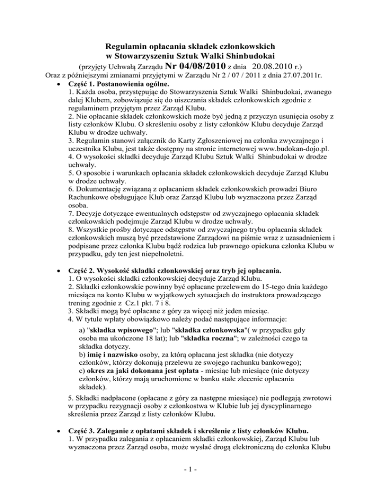 Regulamin opłacania składek członkowskich - Budokan-Dojo