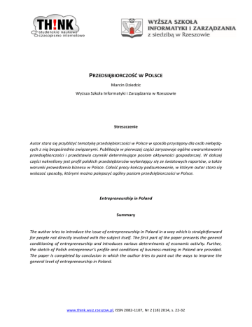 przedsiębiorczość w polsce - Wyższa Szkoła Informatyki i