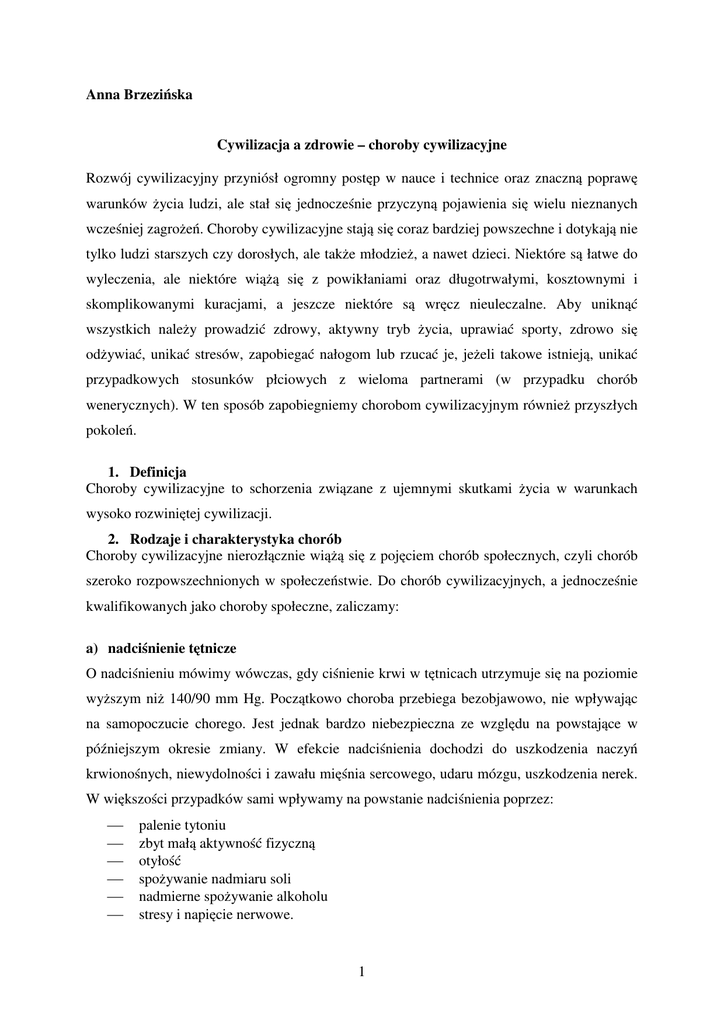 szeroko rozpowszechnionych w społeczeństwie. Do chorób cywilizacyjnych, a jednocześnie