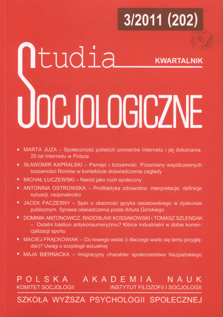 Społeczność polskich pionierów Internetu i jej dokonania. W 20 rocznicę pojawienia się w Polsce Internetu Streszczenie: Artykuł opisuje początki Internetu w Polsce oraz losy zbiorowości polskich pionierów Internetu, czyli ludzi, którzy stworzyli techniczne podwaliny dla funkcjonowania sieci w naszym kraju. W artykule opisany został proces powstawania skupiającej ich społeczności. Procesy komercjalizacji i umasowienia Internetu w Polsce znacząco wpłynął na funkcjonowanie tej społeczności. Z jednej strony wytworzyło się przekonanie o elitarności własnej grupy, co wpłynęło na umocnienie grupowej identyfikacji. Z drugiej jednak strony dało się zaobserwować zróżnicowane postawy pionierów wobec tych procesów. W artykule omówiony też został wpływ pionierów Internetu na technologiczną i społeczną istotę Internetu: od kluczowego znaczenia w pierwszym okresie funkcjonowania Internetu w Polsce po późniejszą marginalizację. Słowa kluczowe: Internet, społeczność, kultura, wartości, elita Wstęp W 2011 roku mija 20 rocznica pojawienia się Internetu w Polsce. Na przestrzeni tych dwóch dekad Internet podlegał nieustannym przemianom, zarówno czysto technologicznym jak wynikającym ze społecznego kontekstu użytkowania tego medium. Internet jako medium powszechnie dziś używane przez miliony ludzi budzi oczywiście ogromne zainteresowanie socjologów. Wciąż żywe pozostają pytania, co technologia ta robi ze społeczeństwem i co społeczeństwo robi z tą technologią. Początki Internetu budzą nieco mniejsze zainteresowanie. Celem badań, których wyniki omawiam w niniejszym artykule, było wypełnienie tej luki w badaniach nad polskim Internetem. Mają one przybliżyć wydarzenia związane z implementacją Internetu w Polsce, przedstawić ich społeczne uwarunkowania i konsekwencje oraz scharakteryzować zbiorowość ludzi, którzy mieli wpływ na pojawienie się Internetu w Polsce. Badania obejmowały 21 wywiadów pogłębionych przeprowadzonych z osobami, które opracowywały techniczną infrastrukturę Internetu w Polsce oraz autorami (i współautorami) projektów mających na celu umożliwienie bądź usprawnienie działania Internetu w Polsce podczas pierwszych 5 lat jego istnienia w naszym kraju 1. Ze względu na różnorodność i nieporównywalność dokonań poszczególnych osób zdecydowałam się na celowy dobór próby starając się dotrzeć do tak dużej liczby osób, jak to możliwe, zwłaszcza do osób o największych zasługach. Jak wskazują badania Manuela Castellsa (2003), społeczne uwarunkowania wczesnych prac nad sieciami komputerowymi wywarły doniosły wpływ także na kierunek ich późniejszego rozwoju. To twórcy i pierwsi użytkownicy Internetu stworzyli fundament, na którym do dziś opiera się Internet, a biorąc pod uwagę jego współczesne znaczenie, być może również ogólniej rozumiane życie społeczne. Wydaje się, iż z tego względu podobna refleksja poświęcona początkom Internetu w polskich warunkach może wnieść istotny wkład do aktualnych rozważań na temat roli globalnej sieci w naszym kraju. Początki Internetu w Polsce Za początek Internetu w Polsce uważa się datę 17 sierpnia 1991 r. Nawiązano wówczas po raz pierwszy międzynarodowe połączenie w protokole TCP/IP. Nadawcą listu elektronicznego był Rafał Pietrak, administrator sieci na Wydziale Fizyki UW, a odbiorcą Jan Sorensen, szef Ośrodka Komputerowego Uniwersytetu w Kopenhadze. Co ciekawe, wydarzenie to przeszło wówczas właściwie bez echa. Nie zachowała się nawet żadna dokumentacja tego połączenia. Internet, czyli sieć komputerowa oparta na otwartym protokole TCP/IP, był uznawany wówczas za technologię amatorską i niedopracowaną, raczej za ciekawostkę dla komputerowych hobbystów niż za przyszłość światowej informatyki. Prym wiodły duże scentralizowane sieci komputerowe stanowiące własność podmiotów komercyjnych. Najważniejszą z nich była związana z koncernem IBM sieć EARN (European Academic and Research Network), stanowiąca część amerykańskiej sieci BITNET. W Polsce sieci komputerowe pojawiły się już w latach 80. Powstała wówczas Międzyuczelniana Sieć Komputerowa łącząca ośrodki z Gliwic, Warszawy i Wrocławia. W oparciu o tę sieć pod koniec lat 80 rozpoczęła działalność Krajowa Akademicka Sieć Komputerowa2. Słabym punktem tego projektu był jednak brak kontaktu z sieciami Biorąc pod uwagę liczbę działających na uczelniach ośrodków sieciowych w latach 1991-96 liczbę wszystkich takich osób można szacować na ok. 80-100 osób (wliczając w to także tych, którzy już nie żyją). Należy jednak podkreślić, że osoby te niekiedy ogromnie różnią się, jeśli chodzi o wkład pracy nad budową polskiej sieci. 2 Warto tu wspomnieć również o amatorskiej sieci komputerowej Fidonet. Pierwszy jej węzeł uruchomiono w 1987 r. w redakcji miesięcznika „Komputer”. Fidonet była to sieć oparta na modemach telefonicznych oraz na tzw. BBS-ach (Bulletin Board System), czyli udostępnianych na komputerach miejscach, do których użytkownicy mogli się łączyć i korzystać z umieszczonych tam zasobów. „Zabawa” z Fidonetem stała się ważnym doświadczeniem dla wielu przyszłych administratorów sieci. 1 światowymi. Dostęp do nich udało się uzyskać w 1987 r. naukowcom z Wydziału Fizyki UW oraz Centrum Astronomicznego PAN, którzy wykorzystując połączenia telefoniczne wymieniali pocztę elektroniczną z ośrodkami naukowymi na Zachodzie. Był to jednak proces nielegalny ze względu na embargo na nowoczesne technologie nałożone przez COCOM (Komitet Koordynacyjny Wielostronnej Kontroli Eksportu) na kraje bloku wschodniego. Od 1988 r. trwały też starania na rzecz przyłączenia Polski do sieci komputerowej EARN. W 1989 r. w tej sprawie polscy naukowcy wystosowali petycję do prezydenta EARN Frode Greisena oraz do prezydenta Stanów Zjednocz