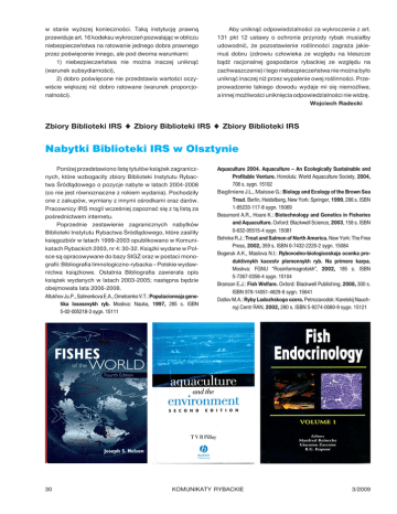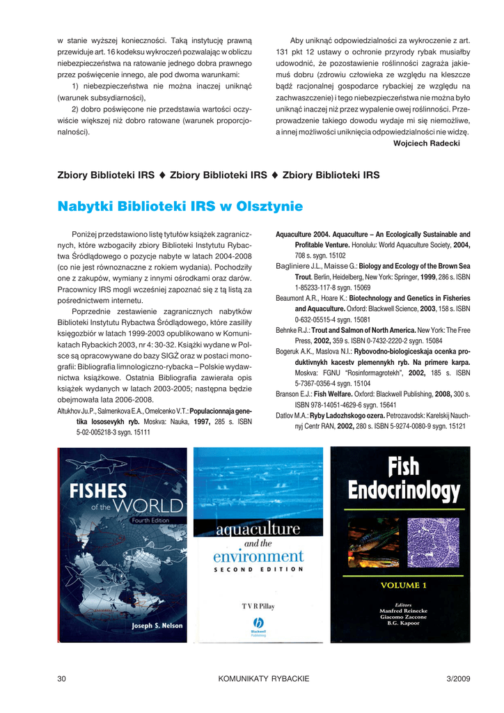Nabytki Biblioteki IRS w Olsztynie - Instytut Rybactwa Śródlądowego
