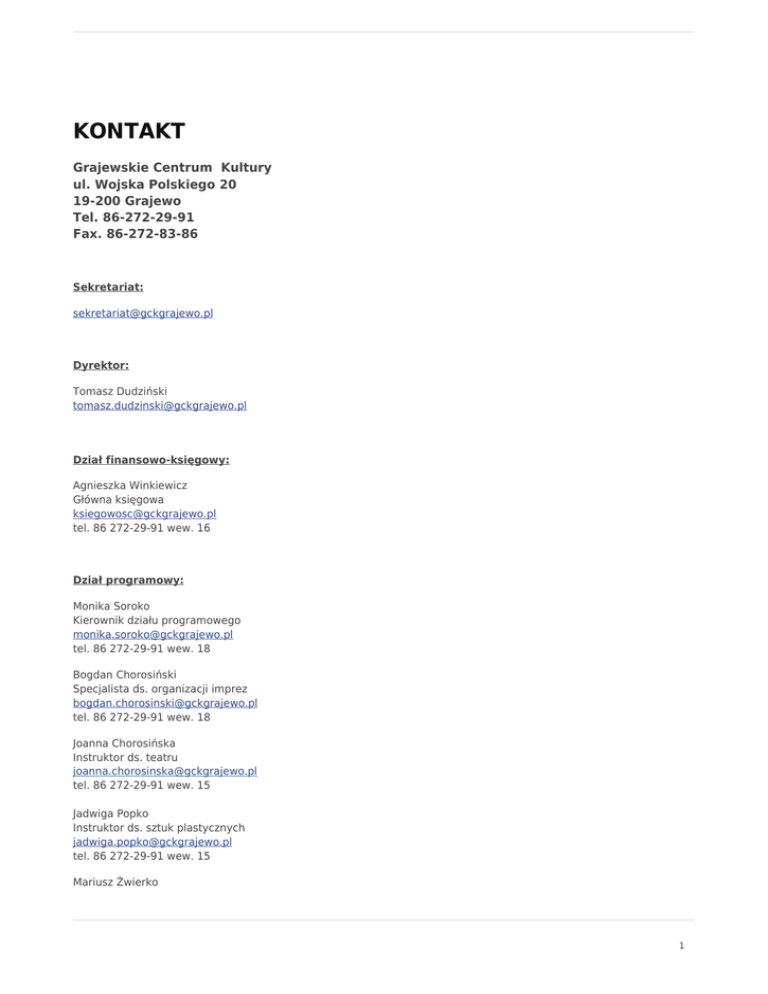 kontakt - Grajewskie Centrum Kultury