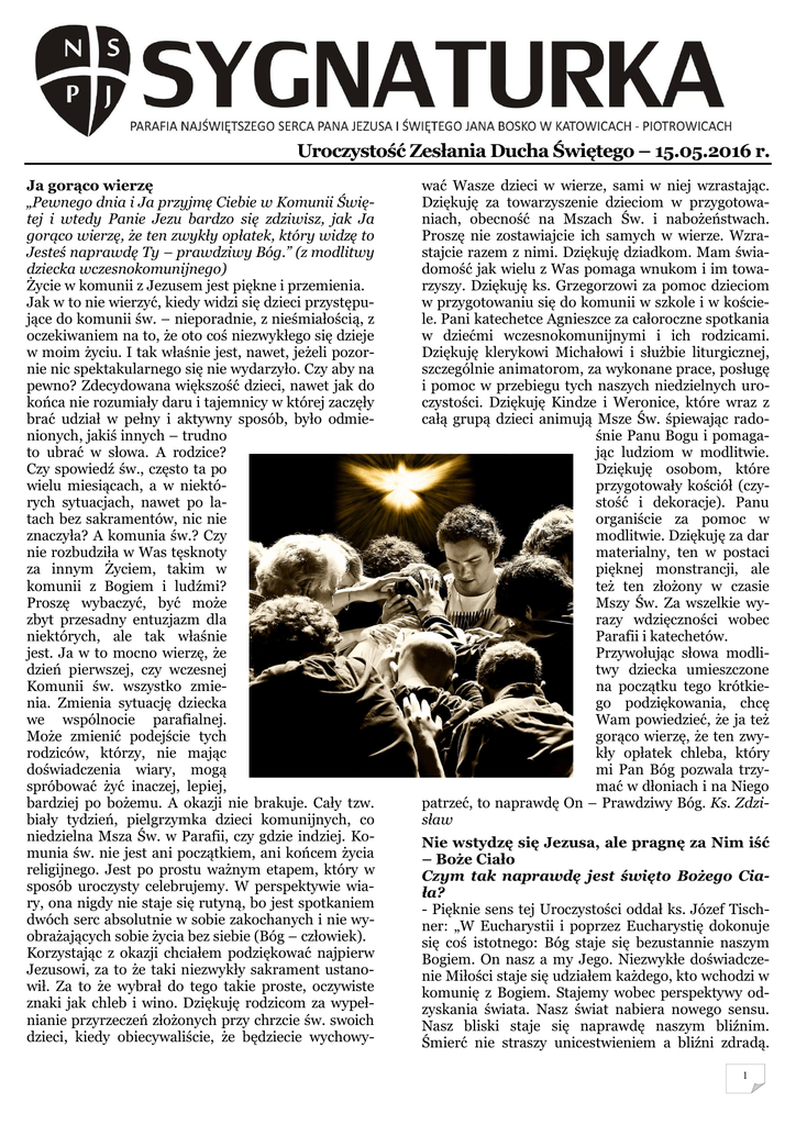 Uroczystość Zesłania Ducha Świętego – 15.05.2016 r.