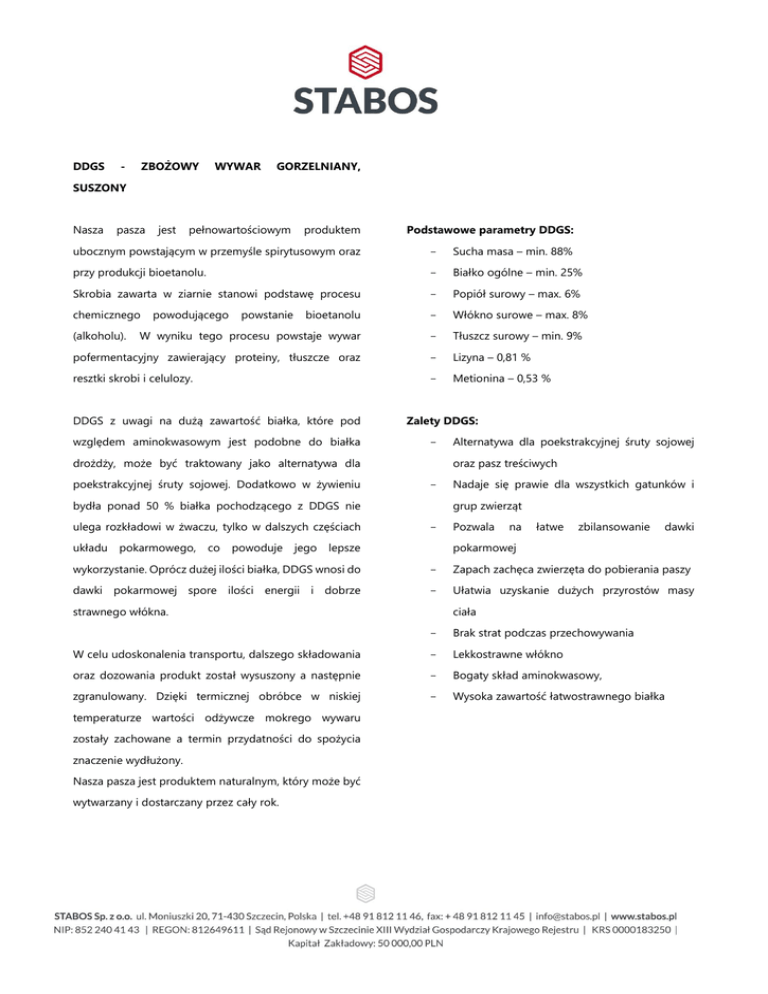 DDGS - ZBOŻOWY WYWAR GORZELNIANY, SUSZONY Nasza