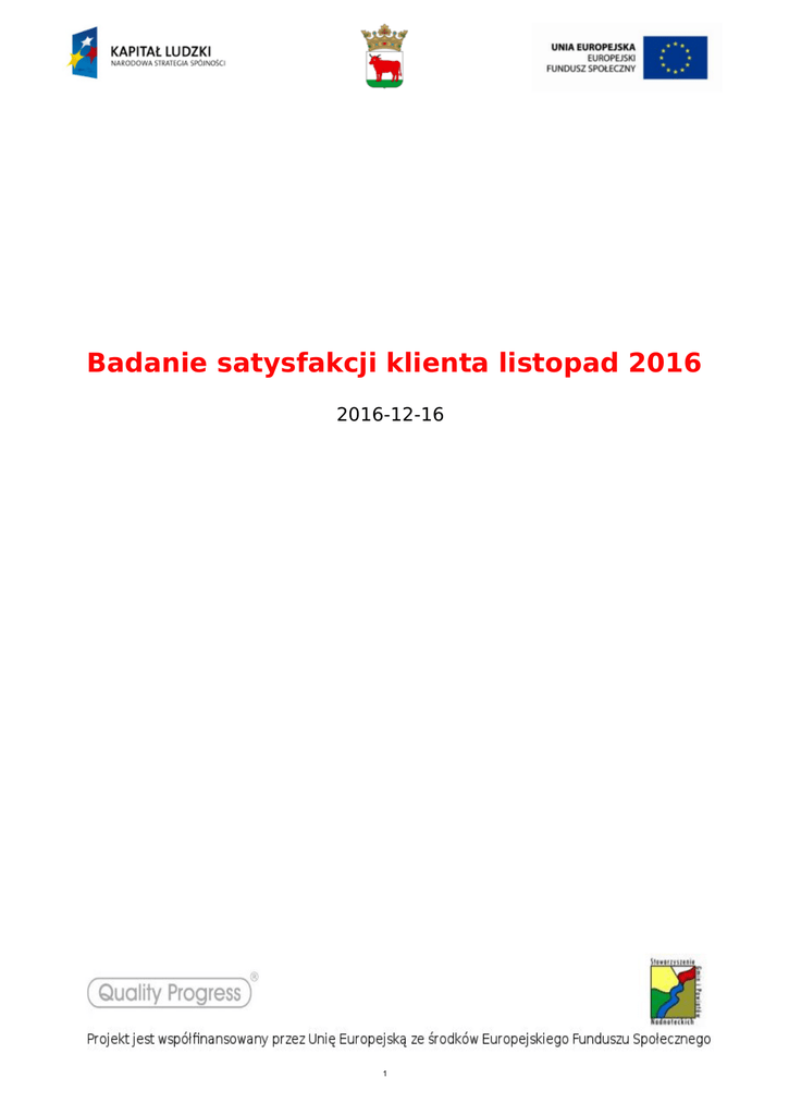 Badanie satysfakcji klienta listopad 2016 2016-12-16 1 Wyniki badań Wyniki badania zostały przedstawione w postaci tabeli oraz wykresów słupkowych i kołowych opatrzonych komentarzami. Na podstawie przedstawionych wyników opracowano wnioski i rekomendacje. Pytanie 1. Jak często korzysta Pan/Pani z usług oferowanych przez Urząd Miejski Trzcianki? (możliwość wyboru jednej odpowiedzi) Pytanie 2. Na jakie trudności napotkał/a Pan/Pani podczas załatwiania sprawy? (możliwość wyboru więcej niż jednej odpowiedzi) 2 Pytanie 3. W jaki sposób najczęściej uzyskuje Pan/ Pani informacje o procedurze załatwienia sprawy? (możliwość wyboru jednej odpowiedzi) Pytanie 4. Czy godziny pracy Urzędu są dostosowane do Pana/Pani potrzeb? 3 Tabela Servqual i ECSI W pytaniu ankietowani dokonywali oceny aspektów pod kątem ich istotności oraz satysfakcji/ zadowolenia. Pytanie Uprzejmość, kultura pracownika Urzędu Udzielenie wyczerpującej informacji Kompetencja i fachowość pracownika Urzędu Wygląd pracownika Terminowość załatwienia sprawy Czas oczekiwania na obsługę Czas i sprawność obsługi Dostęp do dokumentów niezbędnych do załatwienia sprawy i ich czytelność (BIP, Urząd) Zaoferowanie pomocy przy wypełnieniu formularzy Warunki lokalowe obsługi klienta Dostępność miejsc do siedzenia i miejsc, gdzie jest możliwość wypełnienia formularzy Czytelność oznakowania wejścia do budynku i komórek organizacyjnych Urzędu Udogodnienia dla klientów niepełnosprawnych Biuro Obsługi Klienta Sekretariat Istotność A B Iloczyn Waga Percepcja C D Iloczyn Waga Servqual ECSI Różnica (D*B)/5 Wag D -B 0.02 3.56 -0.06 3.59 -0.04 3.57 223 226 225 4.21 4.26 4.25 224 223 223 4.23 4.21 4.21 198 225 218 221 220 3.74 4.25 4.11 4.17 4.15 223 221 224 222 218 4.21 4.17 4.23 4.19 4.11 0.47 -0.08 0.11 0.02 -0.04 3.14 3.54 3.48 3.49 3.41 217 4.09 225 4.25 0.15 3.48 198 209 3.74 3.94 219 207 4.13 3.91 0.4 -0.04 3.09 3.08 212 4 222 4.19 0.19 3.35 207 3.91 183 3.45 -0.45 2.7 214 209 4.04 3.94 221 4.17 0.13 222 4.19 0.25 Wskaźnik CSI dla urzędu: 4 3.37 3.3 3.34 Wnioski i rekomendacje Gmina Trzcianka, w 2013r., w ramach realizacji projektu „Dobry i przyjazny Urząd” wdrożyła w Urzędzie Miejskim Trzcianki zadanie polegające na monitorowaniu poziomu satysfakcji klienta z jakości świadczonych usług publicznych. Badania prowadzone są systematycznie raz w roku przez okres nie krótszy niż 3 tygodnie. W okresie od 17 listopada do 9 grudnia 2016r. przeprowadzono kolejne badanie ankietowe. W badaniu wzięło udział 54 respondentów – 33 osoby wypełniły ankiety w formie elektronicznej, 20 osób w formie papierowej. Ankietowani pozytywnie ocenili jakość świadczonych usług, w tym udzielanie wyczerpujących informacji, kompetencje, fachowość i uprzejmość pracowników. Wskazali na brak udogodnień dla klientów niepełnosprawnych oraz na warunki lokalowe obsługi klienta. Wychodząc naprzeciw oczekiwaniom klientów w przyszłym roku planuje się zamontowanie windy w Urzędzie Miejskim Trzcianki. Ponadto mając na względzie profesjonalną obsługę klientów przewiduje się kontynuację szkoleń dla pracowników. 5 Powered by TCPDF (www.tcpdf.org)