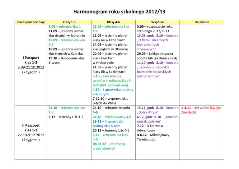 Harmonogram roku szkolnego 2012/13
