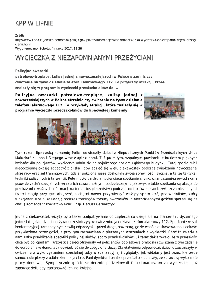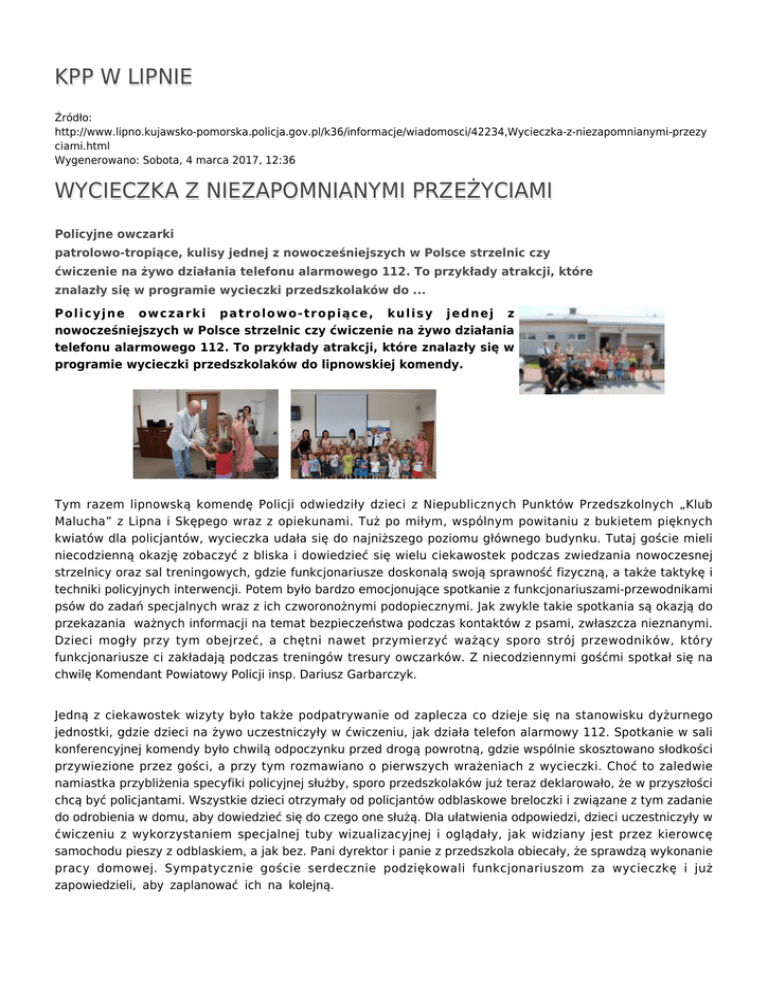 KPP W LIPNIE WYCIECZKA Z NIEZAPOMNIANYMI PRZEŻYCIAMI