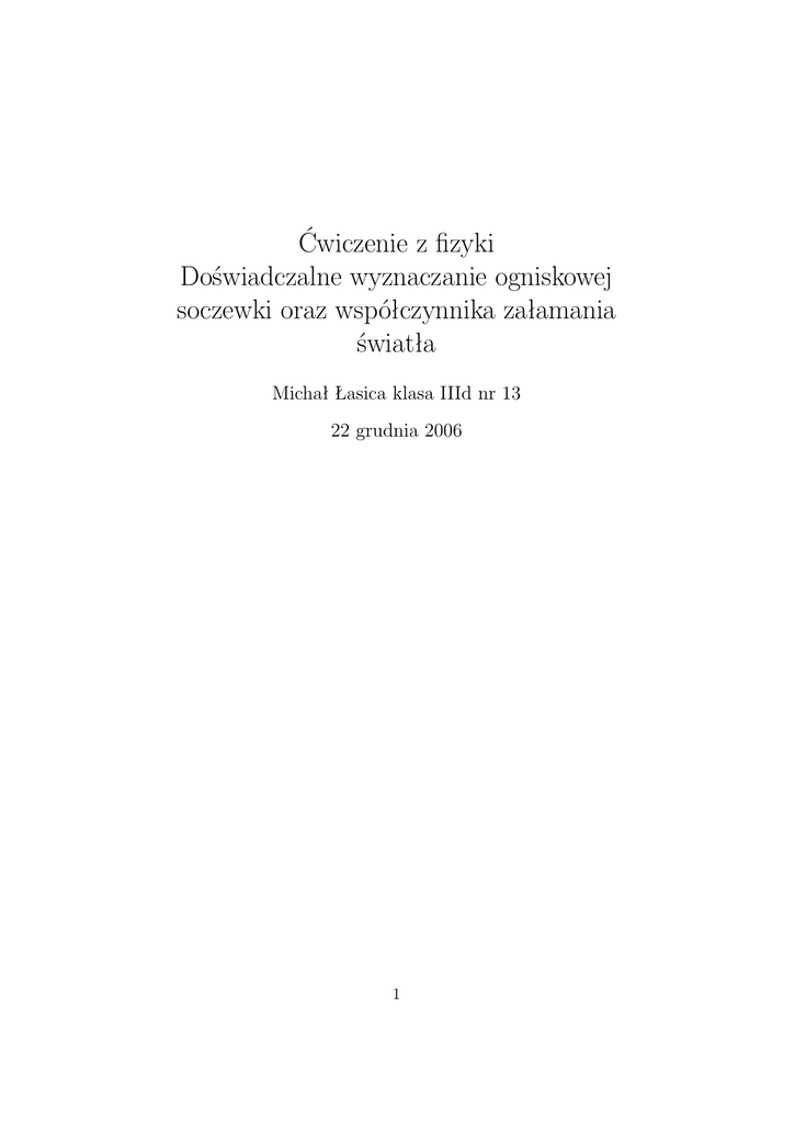 Ćwiczenie z fizyki Doświadczalne wyznaczanie ogniskowej