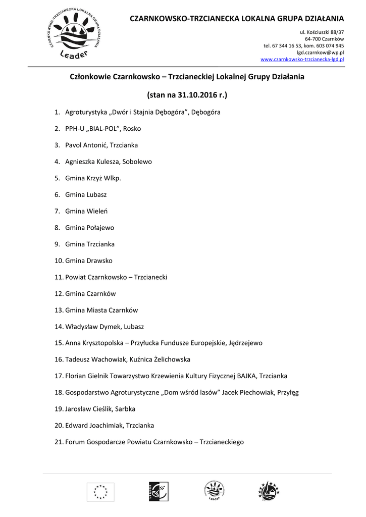 lista członków - Czarnkowsko-Trzcianecka Lokalna Grupa Działania