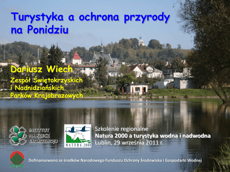 Turystyka a ochrona przyrody na Ponidziu Dariusz Wiech Zespół Świętokrzyskich i Nadnidziańskich Parków Krajobrazowych Szkolenie regionalne Natura 2000 a turystyka wodna i nadwodna Lublin, 29 września 2011 r. Dofinansowano ze środków Narodowego Funduszu Ochrony Środowiska i Gospodarki Wodnej Nida jest najdłuższą rzeką województwa świętokrzyskiego. Ma 151,2 km, a powierzchnia dorzecza wynosi 3862 km2. To typowa rzeka nizinna, której szerokość w najszerszym punkcie w okolicach Motkowic wynosi 79 m, a w najwęższym 6 m. Głębokość waha się od 0,4 do 3 m. ZESPÓŁ ŚWIĘTOKRZYSKICH I NADNIDZIAŃSKICH PARKÓW KRAJOBRAZOWYCH 1. SuchedniowskoOblęgorski PK 2. Sieradowski PK 1. 2. 5. 3. 4. 8. 3. ChęcińskoKielecki PK 7. 6. 4. CisowskoOrłowiński PK 5. Jeleniowski PK 6. Nadnidziański PK 7. Szaniecki PK 8. Kozubowski PK Na terenie Ponidzia wytyczono również obszary chronione w ramach projektu Natura 2000. OBSZARY SPECJALNEJ OCHRONY OSO: 1. Dolina Nidy SPECJALNE OBSZARY OCHRONY SOO: 1.Ostoja Nidziańska; 2.Ostoja Kozubowska; 3.Ostoja Mierzawy; 4.Ostoja Stawiany; 5.Ostoja Szaniecko - Solecka. Dolina Nidy i Ostoja Nidziańska obejmują najbardziej cenny przyrodniczo i atrakcyjny turystycznie fragment Ponidzia, przebiegający wzdłuż rzeki Nidy. Obszar Specjalnej Ochrony ptaków Dolina Nidy PLB260001 Powierzchnia: 15 177,4 ha. Położony częściowo na terenie Nadnidziańskiego Parku Krajobrazowego, a także na terenie Nadnidziańskiego Obszaru Chronionego Krajobrazu. Status obszaru natura 2000 jest gwarancją dobrego stanu środowiska przyrodniczego, dlatego stanowi zachętę do wyboru takiego terenu na miejsce wypoczynku. Pomiędzy turystyką a ochroną przyrody widoczna jest sprzeczność interesów Im bardziej unikalne i atrakcyjne są obiekty i obszary przyrodnicze, tym większe jest zainteresowanie. Jednak właśnie te elementy podlegają bardziej rygorystycznym przepisom ochronnym ograniczającym możliwości udostępnienia dla turystyki. Najważniejszą rzeczą jest określenie zasad udostępnienia najcenniejszych elementów przyrodniczych dla celów turystycznych. Analizując ten problem w przypadku już istniejących form ochrony przyrody dobrze jest wziąć pod uwagę np. parki narodowe gdzie turystyka jest możliwa wyłącznie po wyznaczonych i oznakowanych szlakach turystycznych Oznakowanie szlaków turystycznych (pieszych, rowerowych, konnych, kajakowych i innych jest rzeczą istotną z uwagi na bezpieczeństwo zarówno przyrody jak i turysty. Najważniejsze jest zabezpieczenie odpowiedniej infrastruktury (zwłaszcza koszy na śmieci w najbardziej popularnych miejscach postojowych na szlakach odpowiedniej to ilości turystów). Na mapach powinny być zaznaczone miejsca przeznaczone do biwakowania, na szlakach kajakowych o dogodnym zejściu na ląd. Przystanie kajakowe (np. nowo wybudowana przystań na rzece Nidzie w Chrobrzu) oprócz wygody dla turystów są ochroną dla ptaków gniazdujących w przybrzeżnych zaroślach. W przypadku wzmożonego ruchu turystycznego na danym terenie koniecznym jest przeprowadzanie częstszej oceny oddziaływania na środowisko W niektórych przypadkach by zmniejszyć możliwość szkód wywołanych przez turystę celowym mogło by być wynajmowanie przewodników zaznajomionych z terenem oraz zasadami poruszania się po nim. Poniżej miejscowości Motkowice uformowała się unikatowa struktura geomorfologiczna — delta śródlądowa Nida wpływa do zagłębienia tektonicznego o płaskim dnie, zwalnia bieg i dzieli koryto na kilka ramion płynących równolegle. Świętokrzyska Kolejka Dojazdowa „Ciuchcia Expres Przykład małolinię inwazyjnej Ponidzie”,turystyki wykorzystująca wąskotorową zbudowaną przez wojska austriackie już w 1915 r., Pociąg, w skład którego może wejść zabytkowa lokomotywa parowa lub spalinowa i wagony pasażerskie, kursuje w każdą niedzielę sezonu letniego oraz na zamówienie. Kursuje na 30-kilometrowym odcinku 11-krotnie dłuższego niegdyś szlaku towarowo-pasażerskiego Dwugodzinna To Z jedna okien zwagonów podróż największych można na trasie atrakcji podziwiać Jędrzejów turystycznych malownicze – Pińczów regionu. wiedzie W ubiegłym przez pejzaże. roku rozlewiska ciuchcia Nidy, przewiozła 21 Występuje tys. turystów tu blisko - o trzy 170 tys. gatunków więcejptaków niż rok wcześniej. To szczególnie polecana forma zwiedzania obszarów chronionych ponieważ turyści nie płoszą ptaków mogąc je jednocześnie obserwować z okien. Turyści nie zostawiają po sobie śmieci. Zarówno w pociągu jak i na trasie znajduje się odpowiednia ilość pojemników. Spływ kajakowy Na odcinku od Motkowic, aż do ujścia Nida wykorzystywana jest turystycznie jako kajakowy szlak wodny. Temperatura wody dochodzi latem do 27oC, co czyni spływy kajakowe Nidą szczególnie atrakcyjnymi. Szlak kajakowy Nidy jest łatwy, nieuciążliwy i bardzoNida malowniczy. Nida ztoczy swe leniwe wody jest jedną najbardziej wśród wzgórz, lasów, łąk i pól w Nadnidziańskim nasłonecznionych i najcieplejszych polskich Parku Krajobrazowym. rzek. Na trasie spływu kajakowego nie ma wielu utrudnień: kilka prożków, małe bystrza, pozostałości po starych młynach, zwalone drzewa. Ich pokonanie nie jest szczególnie trudne a z pewnością podnosi atrakcyjność płynięcia. NaCiepła niektórych i czysta odcinkach, woda oraz zwłaszcza piaszczyste w okresie dno suchego umożliwiają lata, kąpiel niedogodnością praktycznie mogą na być całejpiaszczyste długości rzeki, przemiały. zaś urokliwe Zaledwie zakątki w kilku na miejscach brzegach zachęcają na całej trasie występuje konieczność do biwakowania przenoszenia . kajaków brzegiem. Atutem jest niewielka liczba kajakarzy, co zapewnia kameralność spływów. Obszar Doliny Nidy został objęty ochroną stosunkowo niedawno. W latach 80-tych powstał Zdjęcia ze spływu mającego 30 latlatach temu pokazują, park krajobrazowy, a 
