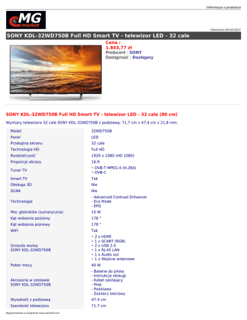 SONY KDL-32WD750B Full HD Smart TV - telewizor LED