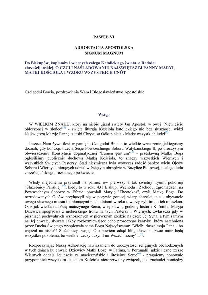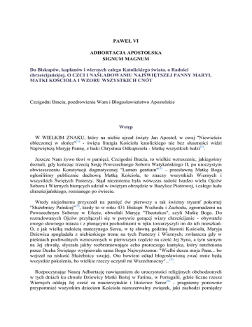 PAWEŁ VI ADHORTACJA APOSTOLSKA SIGNUM MAGNUM Do