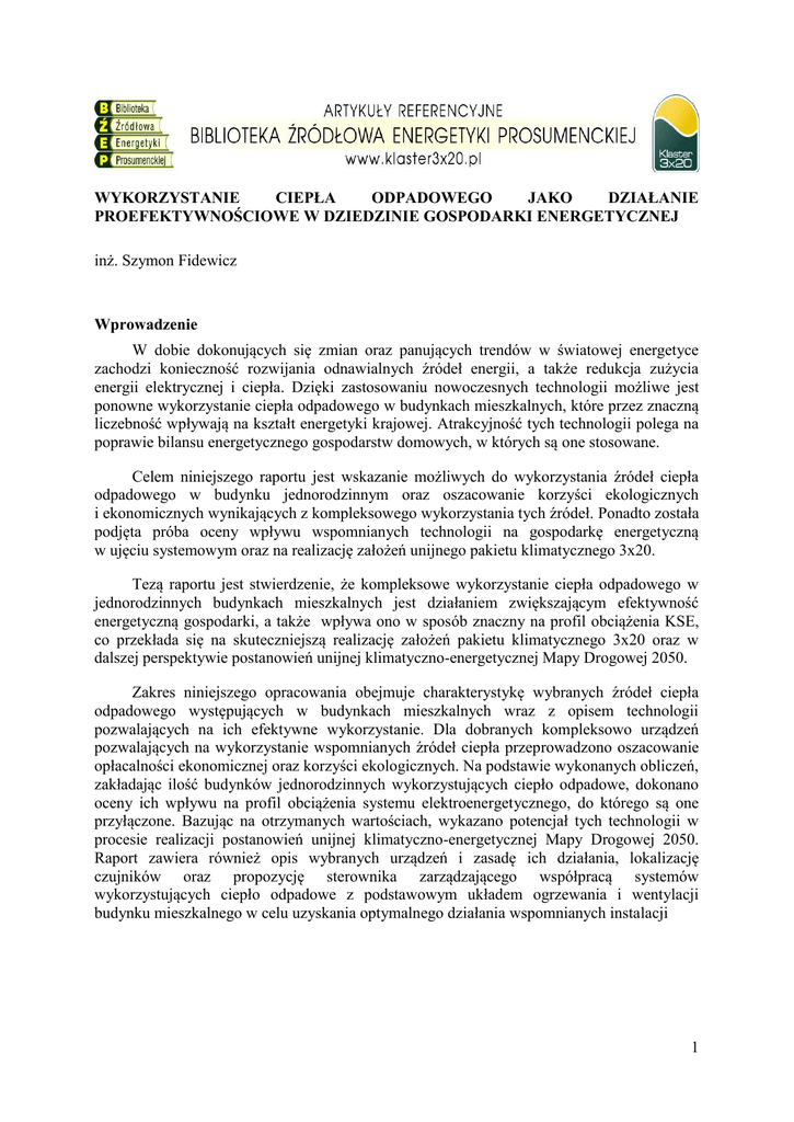 1 WYKORZYSTANIE CIEPŁA ODPADOWEGO JAKO DZIAŁANIE