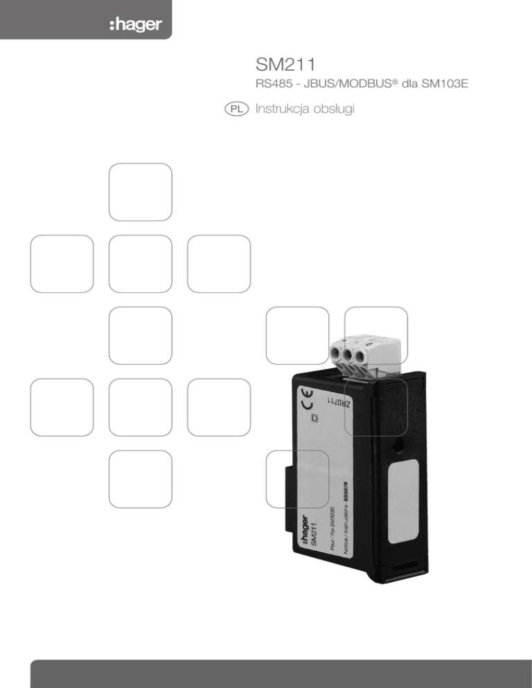SM211 RS485 - JBUS/MODBUS® dla SM103E Æ Instrukcja obsługi Æ Spis treści Przygotowanie................................................................ 1 Informacje ogólne .......................................................... 1 Montaż ............................................................................ 2 Programowanie .............................................................. 3 Adres komunikacji....................................................... 4 Prędkość transmisji danych ........................................... 4 Kontrola parzystości ................................................... 5 Bity stopu ................................................................. 5 Komunikacja ................................................................... 6 Standardowa ramka komunikacyjna ................................ 6 Tabela komunikacji ...................................................... 6 Dane techniczne............................................................. 6 Słownik skrótów ............................................................. 6 Przygotowanie W celu zapewnienia bezpieczeństwa personelu i sprzętu przed uruchomieniem urządzenia należy uważnie zaznajomić się z treścią niniejszej instrukcji. Przy odbiorze przesyłki należy sprawdzić : • • • • stan opakowania; czy produkt nie został uszkodzony w czasie transportu; czy urządzenie jest zgodne z zamówieniem; czy opakowanie zawiera produkt oraz instrukcję użytkowania. Informacje ogólne Funkcje Podstawowe informacje Opcjonalny moduł komunikacyjny RS485 powinien być połączony z modułem SM103E. Udostępnia on połączenie szeregowe RS485 (2- lub 3-przewodowe) obsługujące protokół JBUS/MODBUS® umożliwiające pracę z modułem SM103E przy zastosowaniu komputera PC lub sterownika PLC. W typowej konfiguracji złącze RS485 umożliwia podłączenie 31 modułów SM102E lub SM103E lub innych urządzeń produktów komunikujących się z komputerem PC lub automatem PLC na odległość do 1200 metrów z zastosowaniem protokołu JBUS/MODBUS®. 1200 M R = 120 N1 N2 Nn R = 120 Sterowniki PLC Inne systemy 1200 M R = 12 0 1200 M 0+- N1 -+0 repeatera repeater RS48 5 Nn R = 120 Sterowniki PLC Inne systemy Zalecenia Il est nécessaire d’utiliser une paire torsadée blindée type Jest konieczne stosowanie skrętki ekranowanej typu LIYCY. W środowisku, w którym występują zakłócenia, lub w sieci o znacznej długości i dużej liczbie urządzeń zaleca się stosowanie skrętki ekranowanej do transmisji danych typu LIYCY-CY. W przypadku przekroczenia długości 1200 m i/lub liczby 31 urządzeń jest niezbędne podłączenie repeatera (1 kanał) lub rozdzielacza (4 kanały) w celu umożliwienia instalacji dodatkowych modułów SM103E w odległości przewyższającej 1200 m. 1 Prosimy o kontakt w celu uzyskania dalszych informacji dotyczących sposobu montażu. Uwaga Na obu końcach przewodu należy zainstalować opornik 120 omów, który znajduje się w dodatkowym module. Montaż Zasilanie modułu SM103E musi być wyłączone. 3 -+ ON 1 0V 1 2 Zainstaluj moduł w jednym z czterech gniazd. O R= N 12 0 1 4 Podłącz zaciski zgodnie ze wskazówkami. Włącz zasilanie. Uwagi 2 Programowanie Poprzednie menu p.451 p.451 p.452 p.452 Następne menu 3 Programowanie Adres komunikacji Przykład : COM ADR = 7 x3 x2 x1 potwierdzenie confirm Prędkość transmisji danych Przykład : BDS = 19 200 Bd x1 x1 x1 potwierdzenie confirm 4 Programowanie Kontrola parzystości Przykład : PAR = Even x1 x1 x2 x3 (Odd) (Even) (No) Bity stopu Przykład : STOP = 2 x1 x1x 1 (2 bits) bity) x2x 2 (1 (1 bits) bit) x1 confirm potwierdzenie 5 Komunikacja Moduł SM103E prowadzi komunikację za pomocą protokołu JBUS/MODBUS® ®, który implikuje komunikację w strukturze master/slave. Są możliwe dwa tryby komunikacji : • urządzenie nadrzędne (master) wysyła komunikat do urządzenia podrzędnego (slave) i czeka na jego odpowiedź; • urządzenie nadrzędne (master) wysyła komunikat do wszystkich urządzeń podrzędnych (slave) i nie czeka na ich odpowiedź. Komunikacja prowadzona jest w trybie RTU (Remote Terminal Unit) z użyciem znaków szesnastkowych składających się co najmniej z 8 bitów. Standardowa ramka komunikacyjna Ramka zawiera następujące pola : Adres urządzenia podrzędnego (slave) Kod funkcji Adres Zgodnie z protokołem JBUS/MODBUS®®, aby komunikat został obsłużony, odstęp między znakami musi być krótszy niż 3T, tj. od czasu transmisji trzech znaków. W celu prawidłowego wykorzystania informacji należy korzystać z funkcji : 3 : odczyt n słów (maksymalnie 128). 6 : zapis słowa. 8 : diagnostyka komunikacji między urządzeniami master i slave z liczników 1, 3, 4, 5 i 6. 16 : zapis n słów (maksymalnie 128). Dane CRC 16 Uwaga Jeśli zostanie wybrany adres urządzenia slave 0, komunikat zostaje wysłany do wszystkich urządzeń w sieci (tylko w przypadku funkcji 6 i 16). Uwaga Czas odpowiedzi (timeout pytanie/odpowiedź) wynosi maksymalnie 250 ms. Tabela komunikacji Tabele komunikacji są dostępne na płycie CD-ROM dostarczanej z modułem RS485 JBUS/MODBUS® dla modułu SM103E. Dane techniczne RS485 Protokół Prędkość Separacja galwaniczna 2 lub 3 przewody, half duplex JBUS/MODBUS® tryb RTU 2400 … 38400 Bd 4 kV Słownik skrótów COM ADR BDS PAR NO Even Odd STOP 1 2 6 Komunikacja Adres urządzenia podrzędnego (slave) Prędkość komunikacji w bodach (bity na sekundę) Kontrola parzystości Bez parzystości Parzysty Nieparzysty Znacznik końca ramki 1 bit stopu 2 bity stopu OCOM 113007 Hager 12.2011 540300B_PL www.hager.com 6S5079-05b