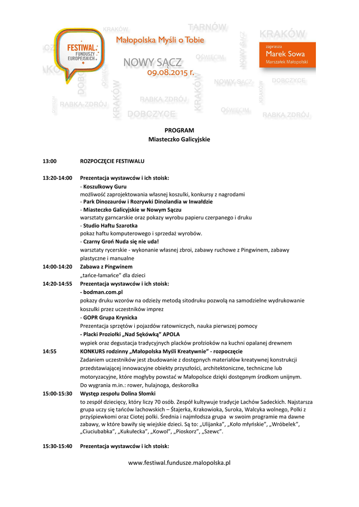 www.festiwal.fundusze.malopolska.pl PROGRAM Miasteczko