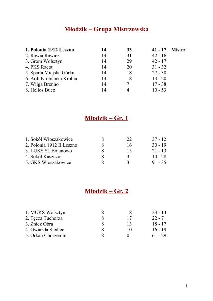 Młodzik – Grupa Mistrzowska Młodzik – Gr. 1
