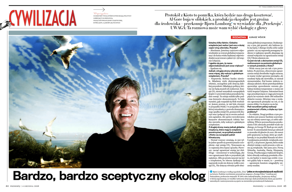 cywilizacja fot. thomas Borberg/polfoto/forum W tym tygodniu: ucieszymy tych, których wkurzają politycy lobbujący za ekologią. dalej zaś pokazujemy cząsteczkę, która jest, a jakoby jej nie było Protokół z Kioto to pomyłka, która będzie nas drogo kosztować, Al Gore buja w obłokach, a produkcja ekopaliw jest groźna dla środowiska – przekonuje Bjørn Lomborg* w wywiadzie dla „Przekroju”. UWAGA: Ta rozmowa może wam wybić ekologię z głowy rozmowa Ustalmy kilka faktów. Globalne ocieplenie jest realne i jest ono w dużej części winą człowieka. Prawda? – Absolutnie. Jesteśmy częściowo odpowiedzialni za wzrost globalnej temperatury i do końca wieku będziemy odpowiedzialni za jej wzrost o jakieś 1,6–3,8 stopnia Celsjusza. I zgadza się pan, że nasza odpowiedzialność jest coraz większa? – Zgadzam się. Jednak z drugiej strony człowiek robi coraz więcej, aby walczyć z globalnym ociepleniem. Prawda? – Nieprawda. Robimy bardzo niewiele. Składamy wiele ekstrawaganckich obietnic, szczególnie jeśli dotyczą dalekiej przyszłości. Składają je politycy, którzy nie będą musieli ich realizować. Emisja CO2 niemal wszystkich europejskich krajów w przewidywalnej przyszłości będzie rosnąć. Ta emisja malała tylko podczas kryzysów ekonomicznych. To było wyraźne, gdy rozpadał się blok wschodni. Jestem pewien, że tak było również w przypadku Polski. I w przypadku NRD, której mieszkańcy z powodu dramatycznego spadku emisji CO2 postanowili zburzyć mur i połączyć się ze swoim zachodnim sąsiadem. Ale oprócz wywoływania kryzysów ekonomicznych robimy bardzo niewiele, żeby walczyć z globalnym ociepleniem. Z drugiej strony mamy jednak globalne inicjatywy, które mają to ocieplenie powstrzymać, na przykład protokół z Kioto czy europejski pakiet klimatyczny. – Niemal wszyscy uważają, że jest tylko jeden sposób na powstrzymanie ocieplenia: ciąć emisję CO2. Tymczasem są co najmniej dwa lepsze sposoby. Pierwszy: zacząć ograniczać emisję już dziś. Drugi – inwestować w technologię, aby owo ograniczanie było w przyszłości jak najtańsze. Albo po prostu nauczyć się żyć z ociepleniem, bo obecna dyskusja tak naprawdę wcale nie dotyczy walki z emisją CO2. Nie dotyczy również prób obni- Bardzo, bardzo sceptyczny ekolog 44 p r z e k ró j | 4 g ru d n i a 2 0 0 8 Łukasz wójcik żenia globalnej temperatury. Dyskutujemy o tym, jak sprawić, aby ludziom żyło się lepiej. I dlatego trzeba sobie zadać pytanie: czy my naprawdę pomagamy ludziom w najlepszy sposób, skupiając się niemal wyłącznie na ograniczaniu emisji CO2? Moim zdaniem nie. Co jest nie tak z obcinaniem emisji CO2 realizowanym na poziomie globalnym w ramach protokołu z Kioto? – Wiele rzeczy jest nie tak z tym protokołem. Po pierwsze, obiecywanie ograniczenia emisji dwutlenku węgla oznacza, że mamy wydać ogromne pieniądze, ale rezultaty będą tak niewielkie, że niemal niezauważalne. Pod koniec stulecia realizacja założeń z Kioto prawdopodobnie spowoduje spowolnienie wzrostu globalnej średniej temperatury o mniej niż 0,015 stopnia Celsjusza. Natomiast koszt tego przedsięwzięcia w ciągu pierwszych pięciu lat wyniesie około 180 miliardów dolarów rocznie. Mówimy więc o wydaniu ogromnych pieniędzy na coś, co da marne efekty. I to dopiero za sto lat. Pod warunkiem pełnej realizacji postanowień z Kioto, a chyba są z tym problemy? – No właśnie. Drugi problem z tym protokołem jest jeszcze bardziej oczywisty: my nie robimy nawet tego, co sobie założyliśmy. Wbrew powszechnemu przekonaniu USA odrzuciły protokół wcale nie dlatego, że George W. Bush go nie ratyfikował. To amerykański Senat go odrzucił w stosunku 95 głosów do zera. Ale nawet jeśli spojrzymy na kraje, które go ratyfikowały, to na przykład Kanada od chwili podpisania protokołu zwiększyła emisję CO2 o 35 procent. Japonia, która miała obniżyć emisję o sześć procent, o tyle samo ją zwiększyła. Tak samo jest z Nową Zelandią, Australią, Danią, Hiszpanią, Grecją. Przytłaczająca większość krajów, które obiecały realizację protokołu z Kioto, nie będzie w stanie tego zrobić. A nawet gdyby były w stanie, to – powtórzę – ogromnym kosztem osiągnęłyby mizerny rezultat. * Bjørn Lomborg to według tygodnika „Time” jeden ze stu najważniejszych myślicieli na świecie. Podobne wyróżnienie przyznał mu magazyn „Foreign Policy”. Lomborg jest Duńczykiem, profesorem statystyki. W 2001 roku zasłynął książką „Sceptyczny ekolog”, w której argumentuje, że wszelkie wyliczenia dotyczące skali przeludnienia Ziemi, jej zasobów naturalnych i zanieczyszczenia są oparte na nierzetelnie prowadzonych badaniach. p r z e k ró j | 4 g ru d n i a 2 0 0 8 45 cywilizacja ekologia fot. afp/east news Lomborg wita się ze swoim naczelnym adwersarzem Alem Gore’em w Kongresie USA Ale ograniczanie emisji CO2 to tylko jeden element protokołu z Kioto. Innym, nie mniej ważnym, jest wspieranie tych ekologicznych sektorów naszych gospodarek, które produkują na przykład panele słoneczne lub turbiny wiatrowe. – Bądźmy szczerzy. Subsydiowanie odnawialnych źródeł energii nie ma dziś żadnego znaczenia. Na poziomie globalnym mniej niż pół procent energii pochodzi z takich źródeł jak panele i turbiny. Ze wszystkich źródeł odnawialnych świat czerpie dziś około 13 procent energii. Ta energia pochodzi jednak głównie ze źródeł geotermalnych, z hydroelektrowni i z ogromnej ilości spalanego drewna. Międzynarodowa Agencja Energetyczna przewiduje, że jeśli nic nie zrobimy, to w 2030 roku dobijemy do poziomu 15 procent energii ze źródeł odnawialnych. Ale jeśli wszystko zrobimy zgodnie z najśmielszymi planami, uczynimy wszystko, o czym mówi Al Gore w swoim oscarowym filmie „Niewygodna prawda”: zamiast 15 procent, osiągniemy 16. To dowód na fundamentalny brak zrozumienia faktu, że tego pro