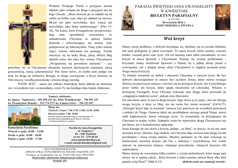 pobierz biuletyn - Parafia pw św. Jana Ewangelisty