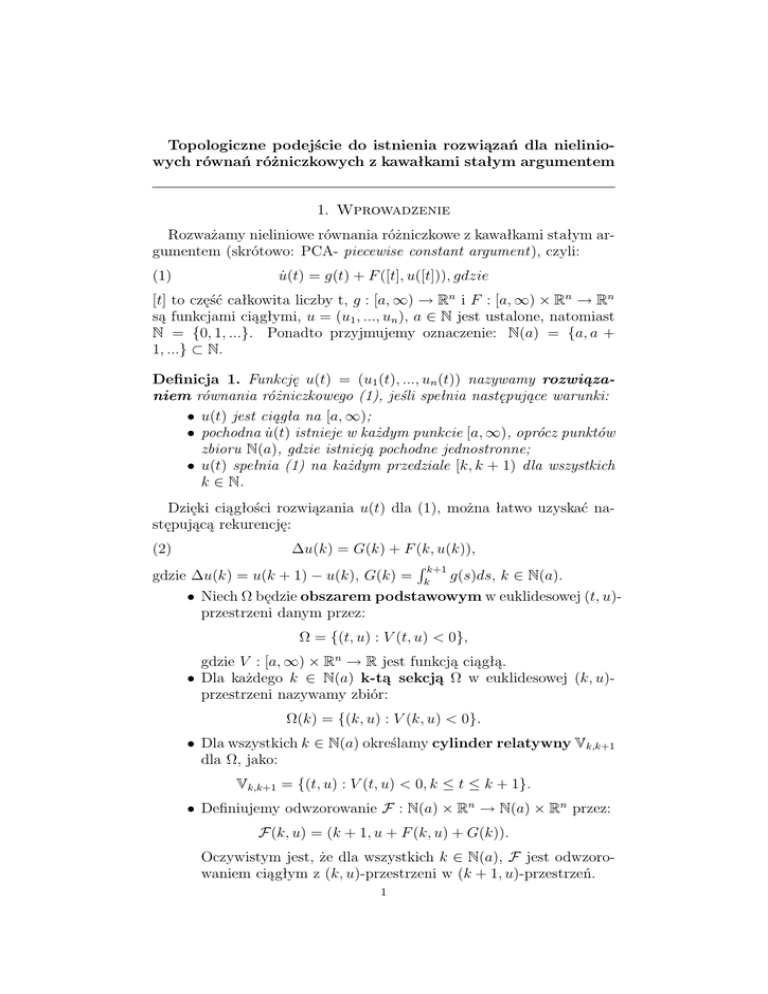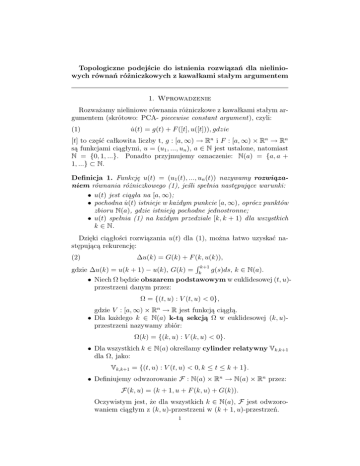 Definicja 2. Załóżmy, że F : N(a) × Rn → N(a) × Rn jest ciągłym odwzorowaniem z (k, u)-przestrzeni w (k + 1, u)-przestrzeń dla wszystkich