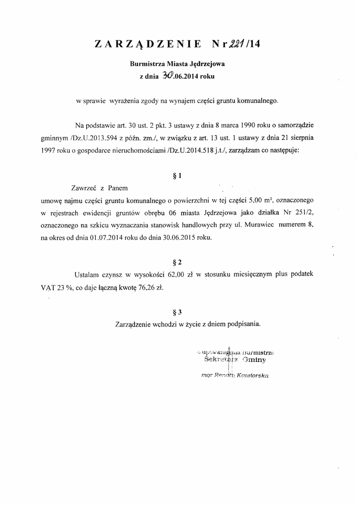 Zarz1dzeniewchodzi w zycie z dniem podpisania.
