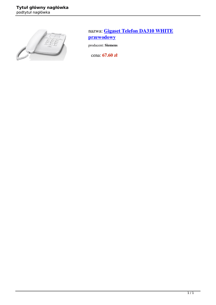 Tytuł główny nagłówka podtytuł nagłówka nazwa: Gigaset Telefon DA310 WHITE przewodowy producent: Siemens cena: 67.60 zł 1/1