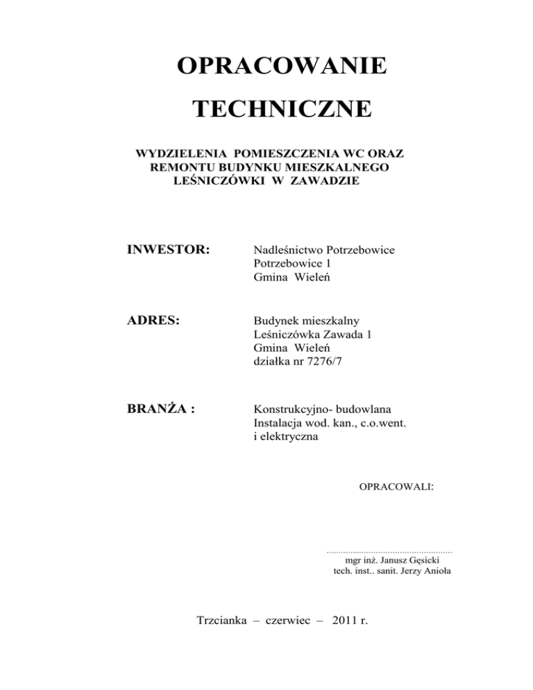 OPRACOWANIE TECHNICZNE -Budynek mieszkalnyLeśniczówki w