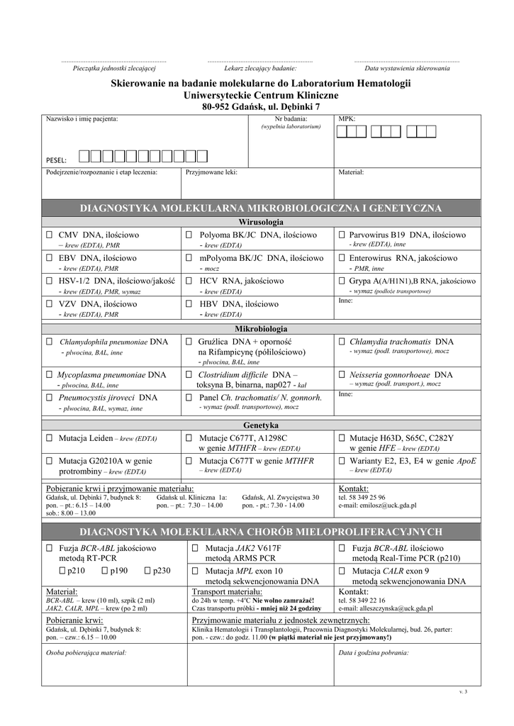 Skierowanie na badanie molekularne do Laboratorium Hematologii