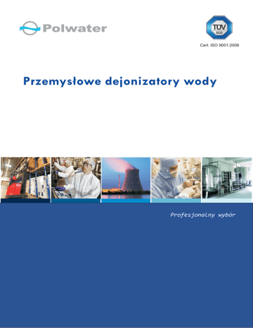 Cert. ISO 9001:2008 Przemysłowe dejonizatory wody Profesjonalny wybór Polwater Dejonizatory Polwater Dejonizatory Polwater to ekonomiczne i zgodne z normami rozwiązanie, zawierające modułowe komponenty zapewniające najlepszą jakość wody procesowej do wszystkich zastosowań przemysłowych. ● Pełna zgodność z normami i standardami. ● Łatwa i bezproblemowa obsługa Zaawansowany sterownik z wieloma funkcjonalnościami auto diagnostycznymi i kontrolnymi, w tym z najdokładniejszym na rynku wielopunktowym pomiarem jakości wody, zapewnia ciągłą pracę oraz pełną kontrolę parametrów praktycznie bez konieczności jakichkolwiek czynności ze strony Użytkownika. Zastosowanie dejonizatorów wody Polwater daje pewność, że jakość wody procesowej będzie niezmiennie odpowiadała wszystkim normom i wymaganiom. Dejonizatory Polwater to gwarancja, że wszystkie procesy, zastosowane materiały, metody pomiarowe od projektowania poprzez produkcję, instalację, kontrolę jakości i eksploatację są zgodne z wszystkimi ● Najniższe koszty eksploatacji obowiązującymi normami, przepisami, Dzięki zastosowaniu najwyższej jakości standardami i dyrektywami. Każdy z materiałów eksploatacyjnych oraz dejonizatorów przemysłowych Polwater najbardziej wydajnych technologii, posiada odpowiednie deklaracje całkowity koszt eksploatacji jest znacznie zgodności CE. niższy od kosztów eksploatacji innych dejonizatorów. ● Uniwersalne zastosowanie Nowoczesna modułowa konstrukcja ● Trwałość i niezawodność sprawia, ze dostosowanie konfiguracji do Dejonizatory Polwater charakteryzują się indywidualnych potrzeb jest łatwe jak niekwestionowaną jakością i trwałością, nigdy dotąd. Indywidualne projektowanie zapewniają optymalizację procesów, uwzględniające wszystkie, nawet powtarzalność wyników. Wszystkie najbardziej nietypowe wymagania urządzenia Polwater wyróżnia Odbiorcy zapewnia optymalne warunki bezkompromisowa dbałość o każdy eksploatacji, doskonałe parametry oraz szczegół oraz zastosowanie najlepszych obniżenie całkowitych kosztów materiałów i podzespołów. posiadania. Zgodny z normami pomiar jakości wody Podstawy Przewodnictwo to zdolność przewodzenia prądu przez ośrodek materialny. Przewodność zaś, to wielkość fizyczna charakteryzująca przewodnictwo w określonym materiale. Przewodność materiału można wyznaczyć znając wymiary geometryczne i przewodnictwo elektryczne jednorodnego bloku danego materiału. gdzie: G -przewodnictwo elektryczne S - pole przekroju poprzecznego elementu, l - długość bloku. Przewodność zależy od temperatury. Jednostką przewodności w układzie SI jest simens na metr (1 S/m.). Cela pomiarowa, wysokiej precyzji Polwater CDX Unikatowa precyzja Dejonizatory Polwater CDX to jedyne dejonizatory na rynku wyposażone w wysokiej klasy konduktometry oraz ultradokładne cele pomiarowe dokonywujące pomiaru przewodności wody ultraczystej zgodnie z normą PN- ISO 27888:1999 i posiadające możliwość wzorcowania przez Główny Urząd Miar. Funkacja rejestracji czasu i poziomu przewodności z możliwością dokonywania wydruków spełnia wymagania Dobrych Praktyk Laboratoryjnych GLP a także GMP, walidacji w tym kwalifikacji Pomiar przewodności wody Zgodnie z normą PN- ISO 27888:1999 w badaniu jakości wody, przewodność powinna być mierzona Instalacyjnej IQ, kwalifikacji operacyjnej OQ i kwalifikacji procesowej PQ. zmiennym prądem elektrycznym między Specyfikacja przeciwległymi o wyznaczonej powierzchni i =Elektrody wykonane z metalu szlachetnego nie odległości elektrodami zanurzonych w wodzie, korodują i minimalizują ryzyko uwalniania jonów tworzącymi sześcian roztworu wodnego o określonych wymiarach (ISO 6107-2:2006). Niezbędne jest: wyznaczenie stałej K celi pomiarowej, czyli stosunku powierzchni czynnej elektrod do ich odległości, pomiar temperatury o wody z dokładnością ± 0,1 C celem korekcji do =Precyzyjny czujnik temperatury o dokładności minimalnej 0,1oC zapewnia szybką i precyzyjną reakcję na zmiany temperatury =Dokładnie wyznaczona stała K czujnika umownej temperatury odniesienia, uwzględnienie =Współczynik α oraz mnożniki korekcyjne dla temperaturowego współczynnika przewodności α całego zakresu pomiarowego oraz temperaturowych mnożników korekcyjnych. κ = G K (µS/cm) gdzie: G -przewodnictwo elektryczne K -stała celi pomiarowej. =Wyjątkowa dokładność pomiaru, nie mniejsza niż ± 0,1% Koszty eksploatacji... Technologia stosowana w dejonizatorach Polwater wielokrotnie wydłuża okresy międzyserwisowe. Dzięki wielostopniowemu cyklowi oczyszczania nie dochodzi do szybkiego zużycia poszczególnych modułów oczyszczających. Nie następują też wahania poziomu przewodności. Porównanie kosztów uzyskania wody z dejonizatora pierwszej i drugiej generacji 10 tyś. 8 tyś. 6 tyś. Jakość wody procesowej 4 tyś. Brak zanieczyszczeń organicznych 2 tyś. Właściwe pH Koszty Brak wahań przewodności Lata 1 2 3 dejonizator I generacji 4 5 dejonizator II generacji Serwis i wsparcie w miejscu instalacji Możliwość zbudowania sieci OD ZAMÓWIENIA PO SERWIS SERWIS Z GWARANTOWANYM CZASEM REAKCJI OBEJMUJE: Pełne wsparcie i doradztwo =Montaż, dostawę, uruchomienie i rozpoczynające się już od etapu wyboru urządzenia przez wszystkie zagadnienia związane z montażem, dostawą i szkoleniem. Bezpłatne porady i konsultacje telefoniczne 7 dni w tygodniu, 24 godziny na przeszkolenie =Serwisy eksploatacyjne i przeglądy okresowe =Bezpłatne naprawy gwarancyjne realizowane w miejscu instalacji =Gwarancja usunięcia usterek podczas pierwszej wizyty serwisu lub wydanie urządzenia zastępczego dobę dotyczące wszystkich =Doradztwo naukowo-techniczne aspektów użytkowania =Modernizacje i rozbudowy dejonizatora. =Badanie jakości wody =Weryfikację i kalibracje urządzeń PEŁNA OBSŁUGA SERWISOWA ODPOWIEDZIALNOŚĆ ZA PARAMETRY PRODUKOWANEJ WODY kon