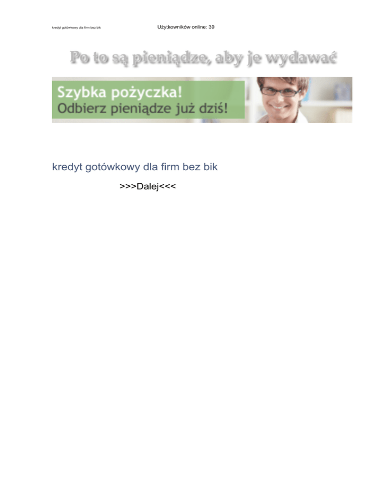 _____________Użytkowników online: 39 kredyt gotówkowy dla firm bez bik kredyt gotówkowy dla firm bez bik _______________>>>Dalej<<< Wielu z nas zastanawia się czym są i jak funkcjonują pożyczki krótkoterminowe zwane również chwilówkami. ZACHĘCAM WSZYTSKICH DO KORZYSTANIA Z POŻYCZEK POZABANKOWYCH CZY PARABANKÓW BO JAK CZŁOWIEK MA PROBLEMY TO ZAWSZE GO PORATUJĄ. Za pomocą Internetu, jest to szybka dyspozycja, która oddawana jest nam bez żadnych problemów, albowiem pożyczkę możemy brać w sposób bardzo szybki, oraz wygodny, co jest wielkim plusem w wypadku naszego odniesienia. Wystarczy nie płacić rachunków za prąd czy gaz, zwlekać ze spłatą raty nawet najmniejszego kredytu bankowego albo najzwyczajniej w świecie zapomnieć o koncie bankowym który założyliśmy jakiś czas temu. JEŻELI MAM BYĆ SZCZERA, TO BYŁAM W SZOKU, BO ONA NA OGÓŁ NIGDY NIC NIE MÓWIŁA O ŻADNYM FACECIE. Po spłacie chwilówek, opłaceniu rachunków i przedszkola dziecka okazało się, że na życie zostało mi mało pieniędzy i nie starczy mi do następnej wypłaty. WSZYSTKO ODBYWA SIĘ AUTOMATYCZNIE BEZ TELEFONÓW I BEZ OPŁAT.PO PRZEDSTAWIENIU PRZEZ SYSTEM OFERT SAM DECYDUJESZ ,KTÓRĄ POŻYCZKĘ WYBRAĆ.JEST TO ZUPEŁNA NOWOŚĆ NA POLSKIM RYNKU!SPRAWDŹ ZA DARMO! Jest to jedyna taka instytucja pozabankowa w Polsce, która pomaga w uzyskaniu tych jakże drogocennych punktów. Szybkie, pewne pożyczki tylko u nas!NOWOŚĆKrótkoterminowe pożyczki, czyli tak zwane chwilówki są świetnym rozwiązanie na zdobycie gotówki do czasu kolejnej wypłaty. ZA TE 1300ZŁ CIĘŻKO MI BYŁO OPŁACIĆ SKLEP I ZUS, ZAPŁACIĆ RACHUNKI DOMOWE I JESZCZE COŚ JEŚĆ A O NOWYM TOWARZE JUŻ NIE MÓWIĄC. Tak czy owak, wtedy zdecydowałam się na pożyczkę pozabankową oferowaną przez Provident. NIE MUSIAŁA JUŻ BAĆ SIĘ O POSADĘ ANI O SPŁATĘ RAT ZA KREDYT MIESZKANIOWY ANI O SPŁATĘ RAT W PROVIDENCIE. Parabanki nie mają wglądu do BIK (wyjątkiem jest tutaj jedynie popularna Wonga), mogą natomiast sprawdzać naszą historię w rejestrach dłużników takich jak KRD, BIG czy ERIF. Dziś nie ma w tym niczego złego, albowiem dzisiejsze czasy, wymagają czasem od nas szybkiego zastrzyku pieniędzy, który to pozwoli nam na osiągnięcie odpowiedniej realizacji, która jest możliwa przez nas do wykorzystania. ZWOLNILI JĄ 5 MIESIĘCY WCZEŚNIEJ A CAŁE OSZCZĘDNOŚCI WYDAŁA NA ŻYCIE I SPŁATĘ RAT KREDYTU NA MIESZKANIE. Michał Sadrak, analityk z Open Finance, zastrzega jednak, że twardych danych nie ma, bo żadna instytucja nie monitoruje tego, co dzieje się na rynku parabankowym i w lombardach.Lawinowo rosnąca liczba firm parabankowych to zdaniem Krzysztofa Pietraszkiewicza, prezesa Związku Banków Polskich, efekt działań Komisji Nadzoru Finansowego. Z kolei według danych firmy konsultingowej Deloitte wartość parabankowych pożyczek wynosi 2-3 mld zł.Biorąc pod uwagę, że średnia wartość kredytu to 500-1000 zł, zadłużonych może być nawet 4 mln Polaków. Dzięki niej, będziemy mogli otrzymać pieniążki w bardzo szybki sposób, co jest wielkim plusem. ZA NAMOWĄ RODZICÓW I ZNAJOMYCH ZAMKNĄŁEM DZIAŁALNOŚĆ, BO NIE CHCIAŁEM DALEJ WPĘDZAĆ SIĘ W DŁUGI. Marzenia o nowym mieszkaniu, samochodzie, czy choćby o urlopie za granicą, nie muszą dzisiaj długo czekać na spełnienie. Nie musisz iść do BANKÓW i stać w niekończących się linii dla niezliczonych godzin ani nie musisz przejść przez stos papierów. NAJNOWSZE POŻYCZKI PRZEZ INTERNETDO 3000ZŁ BEZ BAZ TYPU BIK DOBRE WARUNKI BRAK DODATKOWYCH OPŁATZAWSZE DOSTANIESZ PROPOZYCJĘ POŻYCZKI ! To bardzo dobre rozwiązanie dla osób takich jak ja - które nie mogą liczyć na zwykła pożyczkę bankową a potrzebują większych pieniędzy. Nie trzeba było przyjmować co tydzień pracownika Providenta w domu, tylko spłacać raty przelewami. W wypadku, kiedy nasz kredyt jest z jakiegoś powodu odrzucany, powinniśmy jak najbardziej zastanowić się nad możliwościami, które to są przypisane do naszego wykorzystania. Najbardziej znany jako zaliczek lub pożyczek wypłaty, te małe i krótkoterminowe wsparcia finansowego są bardzo wygodne w przypadku, gdy w obliczu trudnych ekonomicznie czasach i potrzebujesz pieniędzy w bardzo krótkim terminie, aby wydostać się z kłopotów. Szybkie kredyty są teraz łatwo dostępne z wielu internetowych lichwiarzy całych Stanów Zjednoczonych. UDAŁO MI SIĘ WYNAJĄĆ MIESZKANIE W KRAKOWIE Z MAŁYM CZYNSZEM I ZNALEŹĆ CAŁKIEM DOBRZE PŁATNĄ PRACĘ. ZAPRASZAMY.POSIADAMY RÓWNIEŻ OFERTY DLA OSÓB ZE ZŁĄ HISTORIĄ I ZAJĘCIAMI KOMORNICZYMI BEZ BAZ BIK I KRD. To naturalne, że jeżeli nie spłacamy pożyczonych pieniędzy w jakiejś firmie, to wcześniej czy później będą wyciągnięte z tego konsekwencje. W SUMIE TO TYLKO 3 PIERWSZE MIESIĄCE MOJEGO SKLEPIKU BYŁY JAKO TAKIE A PÓŹNIEJ TO BYŁO TYLKO GORZEJ I GORZEJ. NA NASTĘPNY DZIEŃ ZAŁATWIŁEM LOKAL I ZGŁOSIŁEM ROZPOCZĘCIE DZIAŁALNOŚCI GOSPODARCZEJ W URZĘDZIE. W związku z tym przez te 5 lat możemy zapomnieć o współpracy z jakimkolwiek bankiem.Nie mamy szans na kredyt a często również na kupienie czegoś na raty. Czytałam na stronie Providenta, że pożyczkę w systemie przelew można teraz spłacać również w ratach miesięcznych. W Vivusie pierwsza chwilówka była i jest darmowa, więc musiałam oddać im 300zł po wypłacie. PO KOLEJNYCH 6 MIESIĄCACH SIOSTRA ZADZWONIŁA DO MNIE, ŻE TEN CHŁOPAK JĄ ZOSTAWIŁ I JESZCZE NA DODATEK ZABRAŁ JEJ PIENIĄDZE Z LEDWOŚCIĄ UZBIERANE NA RATĘ ZA MIESZKANIE. W PRAWDZIE ZĘBY STAŁY SIĘ BARDZIEJ WRAŻLIWE I MUSIAŁEM UWAŻAĆ CO JEM ALE TA BIEL WSZYSTKO MI WYNAGRADZAŁA. POTRZEBA WYNIKAJĄCA Z TWORZENIA CORAZ TO NOWSZYCH FORM POŻYCZKOWYCH,WYNIKA Z PARU CZYNNIKÓW.SPOŁECZEŃSTWO W POLSCE ROBI SIĘ CORAZ UBOŻSZE. Posiadając zły BIK czy BIK pusty jedynym rozwiązaniem są właśnie instytucje pozabankowe. Klient bez umowy o pracęn