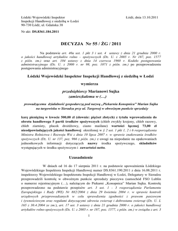 DECYZJA Nr 55 / ŻG / 2011 - Wojewódzki Inspektorat Inspekcji
