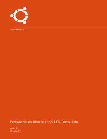 Zespół Ubuntu.pl Przewodnik po Ubuntu 14.04 LTS Trusty Tahr wersja 1.0 16 maja 2014 Spis treści Spis treści Spis treści 1 Wstęp . . . . . . . . . . . . . . . . . . . . 1.1 O Ubuntu . . . . . . . . . . . . . . . . 1.2 Dlaczego warto zmienić system na 2 4.15 LibreOffice — pakiet biurowy . . . . . 77 2 4.16 Rhythmbox — odtwarzacz muzyki . . 77 4.17 Totem — odtwarzacz filmów . . . . . 79 5 Sztuczki z systemem Ubuntu . . . . . . 81 Ubuntu? . . . . . . . . . . . . . . . . 3 2 Instalacja Ubuntu . . . . . . . . . . . . . 6 5.1 Wybór szybszych repozytoriów . . . . 81 82 2.1 Pobieranie obrazu instalatora . . . . . 6 5.2 Wyłączenie Global Menu . . . . . . . 2.2 Nagrywanie pobranego obrazu . . . . 6 5.3 Minimalizacja aplikacji poprzez 2.3 Przygotowanie do instalacji . . . . . . 9 2.4 Uruchomienie instalatora . . . . . . . 11 2.5 Graficzny instalator Ubuntu . . . . . 2.6 Partycjonowanie dysku twardego . . . 2.7 kliknięcie na jej ikonę w Launcherze . 82 5.4 Normalny wygląd pasków przewijania 83 14 5.5 Prywatność . . . . . . . . . . . . . . . 83 23 5.6 Unity Tweak Tool . . . . . . . . . . . 84 Zaawansowane partycjonowanie . . . . 29 5.7 Ubuntu Tweak . . . . . . . . . . . . . 84 2.8 Instalacja na maszynie wirtualnej . . 34 5.8 Instalacja nowych motywów graficznych 84 2.9 Aktualizacja z poprzedniego wydania 37 5.9 Instalacja zestawu ikon . . . . . . . . 85 5.10 Folder domowy na pulpicie . . . . . . 86 40 5.11 Steam . . . . . . . . . . . . . . . . . . 86 2.10 Rozwiązywanie problemów z instalacją 37 3 Pierwsze uruchomienie systemu . . . . 3.1 Uruchomienie systemu Ubuntu . . . . 40 5.12 Wyłączenie raportowania błędów . . . 87 3.2 Ekran logowania . . . . . . . . . . . . 41 5.13 Odtwarzanie szyfrowanych płyt DVD 87 3.3 Rzut oka na pulpit Ubuntu . . . . . . 42 5.14 Przyspieszanie systemu poprzez 3.4 Instalacja oprogramowania . . . . . . 42 3.5 Rzeczy do zrobienia po instalacji 5.15 Oczyszczanie systemu . . . . . . . . . 88 Ubuntu . . . . . . . . . . . . . . . . . 49 5.16 Konfiguracja menu rozruchowego . . . 89 4 Pulpit Ubuntu Unity . . . . . . . . . . . 53 6 Rozwiązywanie problemów z Ubuntu . 91 7 Tematy zaawansowane . . . . . . . . . . lepsze wykorzystanie pamięci . . . . . 87 4.1 Pulpit . . . . . . . . . . . . . . . . . . 53 4.2 Panel menu . . . . . . . . . . . . . . . 54 7.1 Sterowniki do kart graficznych . . . . 93 4.3 Launcher . . . . . . . . . . . . . . . . 55 7.2 Firewall . . . . . . . . . . . . . . . . . 96 4.4 Dash . . . . . . . . . . . . . . . . . . 57 7.3 Antywirus . . . . . . . . . . . . . . . . 97 4.5 Obszary robocze . . . . . . . . . . . . 60 7.4 Użytkownicy . . . . . . . . . . . . . . 98 4.6 Zarządzanie oknami . . . . . . . . . . 61 4.7 HUD — Heads-Up Display . . . . . . 63 4.8 Nautilus — menadżer plików . . . . . 64 4.9 Konta sieciowe . . . . . . . . . . . . . 67 4.10 Empathy — komunikator internetowy 68 4.11 Shotwell — organizer zdjęć . . . . . . 69 4.12 Firefox — przeglądarka internetowa . 70 9 Dodatek 1: Skróty klawiszowe Unity . 102 4.13 Thunderbird — klient pocztowy . . . 74 10 Dodatek 2: Informator poleceń 4.14 Déjà Dup — kopie zapasowe . . . . . 75 93 8 O Przewodniku . . . . . . . . . . . . . . . 100 8.1 Autorzy . . . . . . . . . . . . . . . . . 100 8.2 Linki . . . . . . . . . . . . . . . . . . 100 8.3 Wykorzystane materiały . . . . . . . . 100 8.4 Licencja . . . . . . . . . . . . . . . . . 100 systemu Unix/Linux . . . . . . . . . . . 104 1 1 1 WSTĘP Wstęp Witaj w Przewodniku po Ubuntu Linux 14.04 Trusty Tahr! Niniejszy dokument pomoże ci zainstalować oraz skonfigurować system operacyjny Ubuntu. Przewodnik obejmuje każdy etap procesu zmiany systemu, od przygotowania twoich plików i ustawień, po instalowanie oraz używanie świeżo zainstalowanej kopii Ubuntu. Przewodnik ten został napisany z myślą o osobach nieposiadających wiedzy technicznej, a większość terminów technicznych opatrzono stosownymi objaśnieniami. Przewodnik zadaje także kłam mitowi, że używanie Linuksa wiąże się z koniecznością wpisywania niezrozumiałych komend w konsoli. Cały tekst został przygotowany z myślą o wykorzystaniu graficznych narzędzi dostarczanych wraz z systemem. Mamy nadzieję, że dzięki lekturze tego przewodnika bezproblemowo zainstalujesz Ubuntu na swoim komputerze i będziesz zadowolony mogąc korzystać z darmowego oraz otwartego systemu operacyjnego. Wersja Ubuntu, która została opisana w tym poradniku, nosi nazwę Ubuntu GNU/Linux 14.04 LTS Trusty Tahr, co oznacza: Ubuntu — nazwa całej serii systemów operacyjnych wydawanych przez firmę Canonical; GNU/Linux — system bazuje na jądrze Linux i wykorzystuje oprogramowanie GNU; 14.04 — jest to wersja z kwietnia (04) 2014 roku; LTS — jest to wersja o przedłużonym wsparciu technicznym, a poprawki będą wydawane do 2019 roku; Trusty Tahr — nazwa kodowa tego wydania. 1.1 O Ubuntu Ubuntu jest kompletnym systemem operacyjnym utrzymywanym i rozwijanym przez firmę Canonical. Pierwsza jego wersja ukazała się w 2004 roku, a w ciągu 10 lat system ten zdobył rzesze fanów. Ubuntu wraz ze swoimi odmianami jest najpopularniejszą na świecie dystrybucją Linuksa. Samo słowo Ubuntu w języku afrykańskiego plemienia Zulusów oznacza „człowieczeństwo wobec innych”, w kontekście systemu operacyjnego tłumaczone jest jednak jako „Linux dla ludzi”. Ideą systemu Ubuntu jest dostarczenie użytkownikowi kompletnego systemu operacyjnego, zawierającego wszystkie elementy niezbędne do codziennej pracy, a jednocześnie umożliwiającego posiadaczowi komputera swobodne korzystanie z systemu i modyfikowanie poszczególnych jego elementów. Wybierając Ubuntu nie musisz się zastanawiać nad tym, czy twój procesor nie ma przypadkiem zbyt dużej liczby rdzeni, co w przypadku korzystania z systemu komercyjnego mogłoby wymagać zakupu innej licencji. Nie musisz się również przejmować tym, że w firmie masz dziesięć komputerów, a twoja licencja na