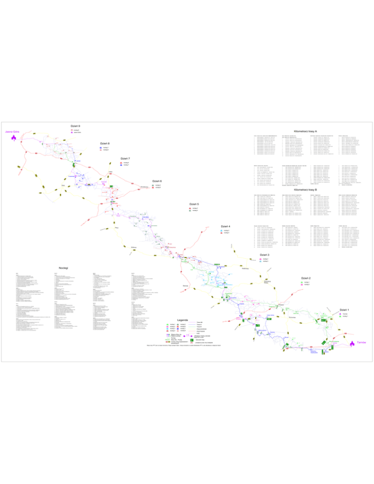 Dzień 9 nocleg 8 Jasna Góra Kilometrarz trasy A Jasna Góra Mstów Zawada 10,4 Małusy Wielkie 6,7 8,3 Brzyszów Dzień 8 Wodząca Kobyłczyce Małusy Małe Żuraw nocleg 7 4,0 nocleg 8 Zagórze Lusławice Turów 5,9 4,5 Bukowno Tarnów - Ostrów 7,5 km - Łętowice 5,0 km - Biadoliny Radłowskie 6,6 km Bucze - Okulice 8,7 km - Uście Solne 7,1 km Nowe Brzesko - Kowala 5,0 km - Proszowice 4,8 km - Ibramowice 7,1 km Racławice - Kalina Las 7,6 km 1. Biadoliny Radłowskie -Przyborów 9,2 km - Bucze 5,1 km Bucze - Okulice 8,7 km - Mikluszowice 6,2 km 1. Ibramowice - Gruszów 1,7 km - Racławice 7,1 km 1. Kalina Las - Miechów 8,1 km - Miechów 0 km 2. Biadoliny Radłowskie -Przyborów 9,2 km - Bucze 5,1 km 1. Uście Solne - Świniary 4,2 km - Nowe Brzesko 8,4 km 2. Ibramowice - Ibramowice 0 km - Racławice 10,1 km 2. Kalina Las - Miechów 8,1 km - Miechów 0 km 3. Biadoliny Radłowskie -Przyborów 9,2 km - Bucze 5,1 km 2. Uście Solne - Świniary 4,2 km - Nowe Brzesko 8,4 km 3. Ibramowice - Gruszów 1,7 km - Racławice 7,1 km 3. Kalina Las - Bukowska Wola 4,6 km - Miechów 3,5 km 4. Biadoliny Radłowskie - Łęki 7,4 km -Bucze 7,4 km 3. Mikluszowice - Drwinia 5,6 km - Nowe Brzesko 7,2 km 4. Ibramowice - Ibramowice 0 km - Racławice 10,1 km 4. Kalina Las - Bukowska Wola 4,6 km - Miechów 3,5 km 5. Biadoliny Radłowskie - Łęki 7,4 km -Bucze 7,4 km 4. Mikluszowice - Zielona 6,3 km - Nowe Brzesko 9,4 km 5. Ibramowice - Kaczowice 7,0 km - Racławice 3,9 km 5. Kalina Las - Kalina Rędziny 2,2 km - Miechów 5,9 km 6. Biadoliny Radłowskie - Mokrzyska 10,8 km -Bucze 2,5 km 5. Uście Solne - Nowe Brzesko 11,7 km - Nowe Brzesko 0 km 6. Ibramowice - Przemęczanki 5,8 km - Racławice 5,1 km 6. Kalina Las - Kalina Las i Rędziny 2,2 km - Miechów 5,9 km 7. Biadoliny Radłowskie - Mokrzyska 10,8 km -Bucze 2,5 km 6. Uście Solne - Grobla 7,7 km - Nowe Brzesko 5,3 km 7. Ibramowice - Przemęczany Kolonia 3,3 km - Racławice 7,3 km 7. Kalina Las - Miechów 8,1 km - Miechów 0 km 8. Biadoliny Radłowskie - Mokrzyska 10,8 km -Bucze 2,5 km 7. Mikluszowice - Drwinia 5,6 km - Nowe Brzesko 7,2 km 8. Ibramowice - Pałecznica 5,1 km - Racławice 7,7 km 8. Kalina Las - Miechów 8,1 km - Miechów 0 km 9. Biadoliny Radłowskie - Szczepanów 8,2 km -Bucze 5,1 km 8. Mikluszowice - Ispina 10,4 km - Nowe Brzesko 2,3 km 9. Ibramowice - Dodów 6,2 km - Racławice 8,3 km 9. Kalina Las - Miechów 8,1 km - Miechów 0 km 11. Biadoliny Radłowskie - Szczepanów 8,2 km -Bucze 5,1 km 9. Mikluszowice - Drwinia 5,6 km - Nowe Brzesko 7,2 km 11. Ibramowice - Radziemice 3,0 km - Racławice 7,1 km 11. Kalina Las - Zarogów 6,5 km - Miechów 8,0 km 12. Biadoliny Radłowskie - Wokowice 5,8 km -Bucze 8,4 km 11. Uście Solne - Grobla 7,7 km - Nowe Brzesko 5,3 km 12. Ibramowice - Błogocice 5,0 km - Racławice 9,1 km 12. Kalina Las - Zarogów 6,5 km - Miechów 8,0 km 13. Biadoliny Radłowskie - Wokowice 5,8 km -Bucze 8,4 km 12. Uście Solne - Nowe Brzesko 11, 7 km - Nowe Brzesko 0 km 13. Ibramowice - Kolonia Gruszów , Zosin 2,2 km - Racławice 6,5 km 13. Kalina Las - Wymysłów 15,5 km - Miechów 5,2 km 13. Uście Solne - Świniary 4,2 km - Nowe Brzesko 8,4 km Janów - Lusławice 5,1 km- ul. Hektarowa 14,3 km 3,3 Dzień 7 Janów 2,2 3,2 nocleg 6 nocleg 7 5,9 Ka tow ice 60k m Lelów Miechów - Charsznica 7,0 km - Jelcza 8,3 km Żarnowiec -Otola Mała 5,5km -Dobraków 5,5km - Szyce 6,4km - Pradła 7,0km 1. Niegowa - Postaszowice 3,6 km - Trzebniów 6,9 km 1. 1. Jelcza - Jelcza Perzówka 0 km - Żarnowiec 4,0 km 1. Pradła - Gołuchowice 3,8 km - Biała Błotna 4,8 km 2. Niegowa - Postaszowice 3,6 km - Trzebniów 6,9 km 2. Janów - Kobyłczyce 9,8 km - ul. Hektarowa 9,9 km 2. Jelcza - Jelcza 0 km - Żarnowiec 4,0 km 2. Pradła - Gołuchowice 3,8 km - Biała Błotna 4,8 km 3. Niegowa - Postaszowice 3,6 km - Trzebniów 6,9 km 3. Janów - Kobyłczyce 9,8 km - ul. Hektarowa 9,9 km 3. Jelcza - Jelcza 0 km - Żarnowiec 4,0 km 3. Pradła - Pradła 0 km - Biała Błotna 2,6 km 4. Niegowa - Niegowa 1,8 km - Trzebniów 5,5 km 4. Janów - Kobyłczyce 9,8 km - ul. Hektarowa 9,9 km 4. Pradła - Pradła 0 km - Biała Błotna 2,6 km 5. Niegowa - Niegowa 1,8 km - Trzebniów 5,5 km 5. Janów - Zawada 13,4 km - ul. Hektarowa 9,5 km 5. Pradła - Pradła 0 km - Biała Błotna 2,6 km 6. Niegowa - Niegowa 1,8 km - Trzebniów 5,5 km 6. Janów - Żuraw 6,6 km - ul. Hektarowa 13 km 6. Pradła - Pradła 0 km - Biała Błotna 2,6 km 7. Niegowa - Niegowa 1,8 km - Trzebniów 5,5 km 7. Janów - Wodząca 9,5 km - ul. Hektarowa 14,4 km 7. Pradła - Pradła 0 km - Biała Błotna 2,6 km 8. Niegowa - Niegowa 1,8 km - Trzebniów 5,5 km 8. Janów - Żuraw 6,6 km - ul. Hektarowa 13 km 8. Pradła - Pradła, Piec 0 km - Biała Błotna 2,6 km 9. Sokolniki - Tomiszowice 5,1 km - Trzebniów 10,4 km 9. Janów - Żuraw 6,6 km - ul. Hektarowa 13 km 9. Szyce - Przyłubsko 5,7 km - Biała Błotna 7,8 km 11. Niegowa - Lutowiec 6,0 km - Trzebniów 5,5 km 11. Janów - Zagórze 6,7 km - ul. Hektarowa 11,7 km 11. Szyce - Siedliszowice 4,8 km - Biała Błotna 5,0 km 12. Sokolniki - Tomiszowice 5,1 km - Trzebniów 10,3 km 12. Janów - Zagórze 6,7 km - ul. Hektarowa 11,7 km 12. Szyce - Siedliszowice 4,8 km - Biała Błotna 5,0 km 13. Sokolniki - Tomiszowice 5,7 km- Trzebniów 10,3 km 13. Dobraków - Siedliszowice 10,3 km - Biała Błotna 6,0 km Trzebniów - Janów 11 km 4. Charsznica - Łąki i Bogdołek 6,4 km - Żarnowiec 7,6 km 5. Charsznica - Tczyca 6,3 km - Żarnowiec 6,3 km 6. Charsznica - Tczyca 6,3 km - Żarnowiec 6,3 km 2,9 Ludwinów Stary Gorzków Nowy Gorzków Trzebniów 7. Jelcza - Żarnowiec 4,0 km - Żarnowiec 0 km Postaszowice 8. Niegówka 8,1 Żarki Dzień 6 Sokolniki Charsznica - Swojczany 5,2 km - Żarnowiec 9,0 km 9. Jelcza - Żarnowiec 4,0 km- Żarnowiec 0 km 11. 3,9 Jelcza - Żarnowiec 4,0 km - Żarnowiec 0 km 12. Jelcza - Żarnowiec 4,0 km - Żarnowiec 0 km 13. Jelcza - Chlina Zamiechówka 3,5 km - Żarnowiec 2,5 km 3,6 Moczydło Niegowa Łutowiec nocleg 5 Tomiszowice Szcz