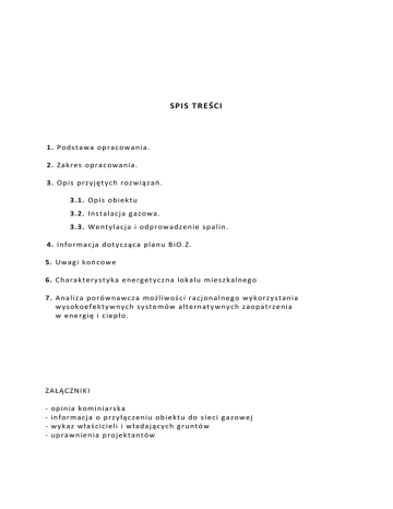 SPIS TREŚCI 1. P ods t a w a op ra cow a n ia . 2. Za k re s opra c ow a nia . 3. Op is prz y j ę t y ch roz w ią z a ń. 3.1. Op is obie k t u 3.2. I ns t a la cj a g a z ow a . 3.3. We nt y la cj a i odp row a dz e nie s pa lin. 4. I nfo rm a cj a d ot y cz ą ca pla n u B iO. Z. 5. Uw a g i k oń cow e 6. C ha ra k t e ry s t y k a e ne rg e t y cz na lok a lu m ie s z k a lne g o 7. A na liz a p orów na w cz a m oż liw oś c i ra cj ona l ne g o w y k orz y s t a nia w y s ok oe fe k t y w ny ch s y st e m ów a lt e rna t y w ny ch z a opa t rz e nia w e ne rg ię i cie p ło. ZA ŁĄ C ZNI KI - op inia k om in ia rs k a in form a cj a o prz y łą cz e niu ob ie k t u do s i e ci g a z ow e j w y k a z w ła ś cicie li i w ła da j ą cy ch g ru nt ó w up ra w nie n ia p roj e k t a nt ów SPIS RYSUNKÓW 1. P roj e k t z a g os poda row a nia t e re nu 2. I ns t a la cj a g a z u i w e nt y la cj a g ra w it a cy j na – piw n ica i pa rt e r 3. I ns t a la cj a g a z u i w e nt y la cj a g ra w it a cy j na – I pię t ro 4. I ns t a la cj a g a z u i w e nt y la cj a g ra w it a cy j na – pod da s z e 5. Ka na ł s pa l inow y i prz e w ód w e nt y la cj i w y w ie w ne j 2 1.P O D S T AWA O P RACO WAN IA: - us t a le nia z I nw e s t ore m - w iz j a l ok a lna prz e pr ow a dz ona p rz e z a u t orów p roj e k t u, - ob ow ią z uj ą ce n orm y i prz e p is y , - op inie k om in ia rs k ie w y da ne p rz e z Z a kła d Ko m in ia r s ki Br a c i Z wier z y ń s kic h s .c . u l. C ie pl ick a 1 4/1 5, 58- 560 J e le nia G ór a 1. 2. 3. 4. 5. 6. D la l ok a lu nr 1 o pin ia n r 1 0D /20 15 z dni a 19- 02- 201 5 D la l ok a lu nr 2 o pin ia n r 1 3D /20 15 z dni a 19- 02- 201 5 D la l ok a lu nr 3 o pin ia n r 1 4D /20 15 z dni a 19- 02- 201 5 D la l ok a lu nr 4 o pin ia n r 1 1D /20 15 z dni a 19- 02- 201 5 D la l ok a lu nr 5 o pin ia n r 1 2D /20 15 z dni a 19- 02- 201 5 Uz upe łn ia j ą cy z a łą cz nik d o opi nii k om i n ia rs k ich z dnia 23 -02 -20 15. - w a runk i prz y łą cz e n ia do s ie ci g a z ow e j P o ls ką S p ó łkę G a z o wn ic twa s p . z o .o . O d d z ia ł we Wr o c ła wiu , u l. Zię bick a 44, 50- 507 Wr ocła w nr ZKP /4 26/ TB-I NF - 101 295 /20 15 , Zg o rz e le c dn ia 3 0-0 3-2 015 r. 2. Z AKRES O P RACO W AN IA: P r o j ekt b u d o wla n y wy m ia ny in s ta la c j i ga z o wej i wy ko n a n ia wen ty la c j i g r a wita c y j n ej w b u d y n ku o 5-c iu lo ka la c h m ies z ka ln y c h . 3. O P IS P RZ YJ ĘT YCH RO Z WIĄZ AŃ : 3.1. O p is o b iektu . Budy ne k m ie s z k a lny , w ie l oro dz inny prz y ul. Zj e dnocz e n ia Na rod ow e g o 29 w J e le nie j G órz e j e st obie k t e m w w olnos t oj ą cy m w z a budow ie z w a rt e j . P roj e k t s w oim z a k re s e m obe j m uj e w y m ia nę ins t a la cj i g a z u ora z budow ę ins t a la cj i w e nt y la cj i g ra w it a cy j ne j w e w s z y s tk ich pię c iu lok a la c h m ie s z k a lny ch. 3 Za w ór g łów ny g a z ow y z na j duj e s ię w s z a fce um ie s z cz one j na z e w nę t rz ne j ś cia nie budy nk u. G a z roz pr ow a dz a ny bę dz ie z a poś re dnict w e m now e j w y m ie nio ne j i ns t a la cj i g a z u do g a z om ie rz y z na j duj ą cy ch s ię na k la ce s chodow e j . Po prz e j ś ciu p rz e z g a z om ie rz e , gaz prow a dz ony bę dz ie prz e w ode m g a z ow y m do lok a l i m ie s z k a l ny ch, g dz ie z os t a nie p odłą cz o ny do k uchni g a z ow y ch. 3. 2. In s ta la c j a g a z o wa W bu dy nk u z os t a nie w y m ie ni ona ca ła k om ple t na ins t a la cj a g a z u pocz ą w s z y od z a w oru g łów ne g o, s z a fk i na ś cia nie z e w nę t rz ne j budy nk u, pion u, g a z om ie rz y o ra z do l ok a li m ie s z k a lny ch g dz ie z os t a nie w pię t y do odbi orn ik a g a z u. W l ok a la ch m ie s z k a lny ch, o bj ę t y ch z a k re s e m opra cow a nia , z a ins t a low a ne z os t a ną na s t ę puj ą ce odbi orn ik i g a z u: - k uche nk a g a z ow a cz t e ropa lnik ow a 5 x 1 - 5 szt. Zuż y cie m a k s y m a lne g a z u w y nos ić bę dz i e ok . 5 x 2 - 1 0 m 3 /h. Kuche nk i g a z ow e cz t e ropa lnik ow e z os ta ną z a ins t a low a ne w k uchni, w a runk i t e chn icz ne t y ch pom ie s z cz e ń odp ow ia da j ą obow ią z uj ą cy m norm om i prz e pis om dot y cz ą cy m ins t a lo w a nia urz ą dz e ń g a z ow y ch. I ns t a la cj ę g a z ow ą proj e k t uj e s ię z rur s t a low y ch łą cz ony ch prz e z s pa w a nie . Rury na le ż y m ocow a ć do ś cia ny na t y nk ow o z a pom ocą s t a low y ch uchw y t ów na m e t a low y ch k ołk a ch roz po row y ch. D ług oś ć prz e w odu g a z ow e g o m ie rz ona od g a z om ie rz a do odbi orn ik a g a z u pow i nna w y nos i ć m in. 3, 0 m . P ode j ś cie do k uche nk i w y k ona ć rurą s t a low ą o ś re dnicy D N 15 m m . P rz e d k uche nk ą z a ins t a low a ć z a w ór o dci na j ą cy o ś re dn icy D N 1 5 m m . P rz e w ody g a z ow e prow a dz ić z poc hy le nie m 5 0 / 0 0 w k ie runk u odbi orn ik a g a z u. P rz y prz e j ś ciu prz e z ś cia ny i s t ro py prz e w ody g a z ow e na le ż y prow a dz i ć w r ura ch och ro nny ch z us z cz e lnie nie m /s z cz e g ół w g ry s . / 4 Ruroc ią g i na le ż y z a m ont ow a ć w uch w y t a ch prz e s uw a ny ch prz y roz s t a w ie : Ś re dnica ru ry (m m ) odle g łoś ć m ię dz y uc hw y t a m i(m ) 15 1,00 20 1,50 25 2,00 I ns t a la cj ę g a z ow ą , po m ont a ż u i prób ie s z cz e lnoś ci na le ż y ocz y ś cić i pom a low a ć fa rbą podk ła dow ą a nt y k oro z y j ną i na w ie rz ch niow ą w k o lo rz e ż ółt y m . 3.3. Wen ty la c j a n a wiewn a i wy wiewn a . P roj e k t uj e s ię ins t a la cj ę w e nt y la cy j ną z g odnie z op inia m i k om inia rs k im i w y da ny m i p rz e z Z a kła d Ko m in ia r s ki Br a c i Z wier z y ń s kic h s .c . ul. C ie pl ick a 1 4/1 5, 58- 560 J e le n ia G óra Wen ty l