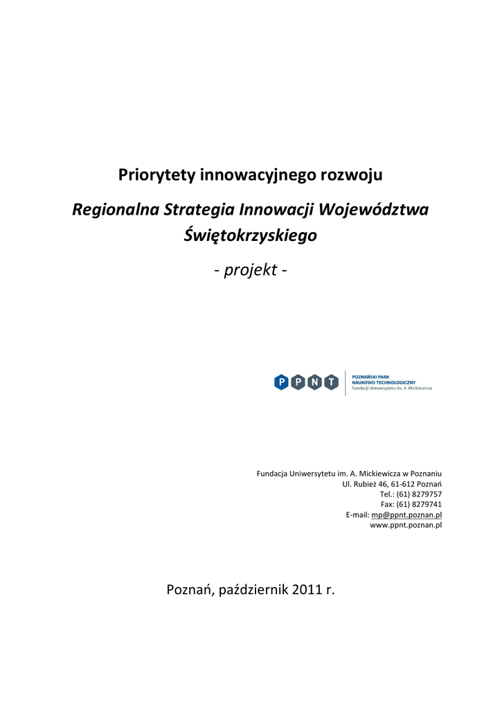 Priorytety innowacyjnego rozwoju Regionalna Strategia Innowacji